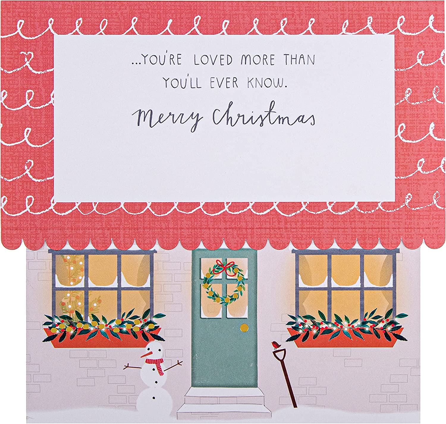 Let Mum and Dad know how very much they're loved, at Christmas time and always, with this clever pop-up card from Hallmark's Innovation collection. Fully Recyclable and Made Using Material From Well-Managed, FSC-Certified forests and Other Controlled Sources. Features a Clever Pop-Up 3D Design with Gold Foil Details. Card Comes Complete with a Co-ordinating Bright Red, Hallmark Branded Envelope. Message Inside Reads: …You're loved more than you'll ever know. Merry Christmas. Card Measures: 17 cm by 17.5 cm, Within Standard UK 'Large Letter' Size Limits.