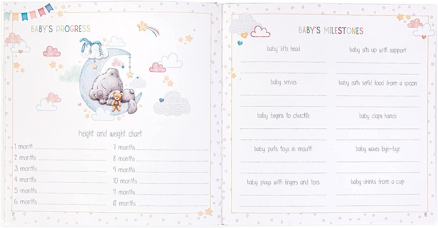 Document the special memories and moments from your pregnancy, birth and baby's first years and treasure them forever in this adorable Tiny Tatty Teddy baby journal. With a lovely gender-neutral design, this journal features sweet illustrations throughout of Tiny Tatty Teddy asleep on a cloud under a rainbow with the words 'So tiny, so small, so loved by all'. This is the perfect gift to celebrate the news of a new arrival, for an expectant mother or as a baby shower gift. Sections included for: Waiting for Baby, Birth of Baby, Coming Home, Settling in, Naming Baby, Our Lovely Family, Baby's Progress, Baby's Milestones, Bath Time, Bedtime, Walking & Talking, First Christmas, First Birthday, First Holiday, Favourite Things, Baby's Friends, Record of Health, Memorable Moments, First Day at School. Tiny Tatty Teddy is a loveable grey teddy bear with a blue nose and a warm heart. He has soft fur and cute patches, and he’s always looking for cuddles. This cute bear features across a lovely range of baby and toddler gifts, toys and clothes from Me to You. The gorgeous designs feature soft illustrations and neutral colours that suit both baby boys and baby girls. Features: - Tiny Tatty Teddy themed keepsake journal. - Perfect as a baby shower gift. - Perfect to use in a gift hamper. - Lovely gender-neutral design. Dimensions: 21.5cm H x 21.5cm W.