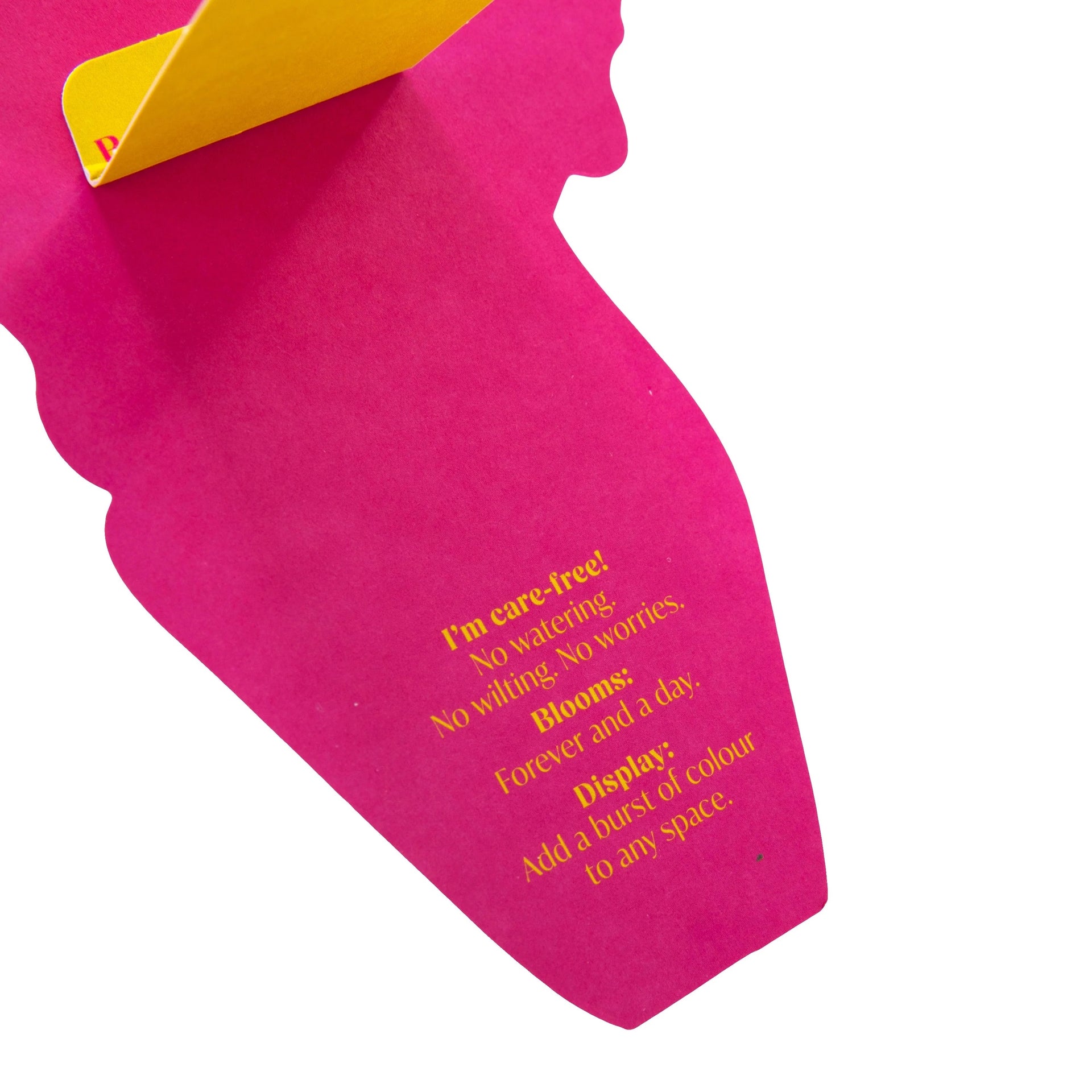 Printed on high-quality board, and featuring a botanical delight with traditional florals in a purple leopard print vase and a die cut design. The horizontal 'A' fold makes for a simple but impactful display, adding a burst of colour to your home. The card comes complete with a co-ordinating Hallmark branded, chartreuse envelope with the Magical Botanicals logo. This product is fully recyclable, and made of material from well-managed, FSC®-certified forests and other controlled sources. Blank inside for your own personal message. Measures: H22.5cm by W15.9cm, Within UK 'Letter' Postage Size Limits.