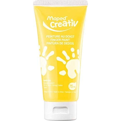My First Finger Paint Kit by Maped Creativ. Creative with your own fingers 1. Stick the large sticker on the cardboard template 2. Bemale the cardboard template with your fingers according to your wishes 3. Remove the large sticker with the help of your parents 4. Design your artwork with small colourful stickers. Recommended age: from 2 years old. Contents: 5 cardboard templates, 5 sheets with stickers, 3 tubes with finger colour (yellow/red/blue), 1 x table mat, reusable plastic case. Ideal for on the go.
