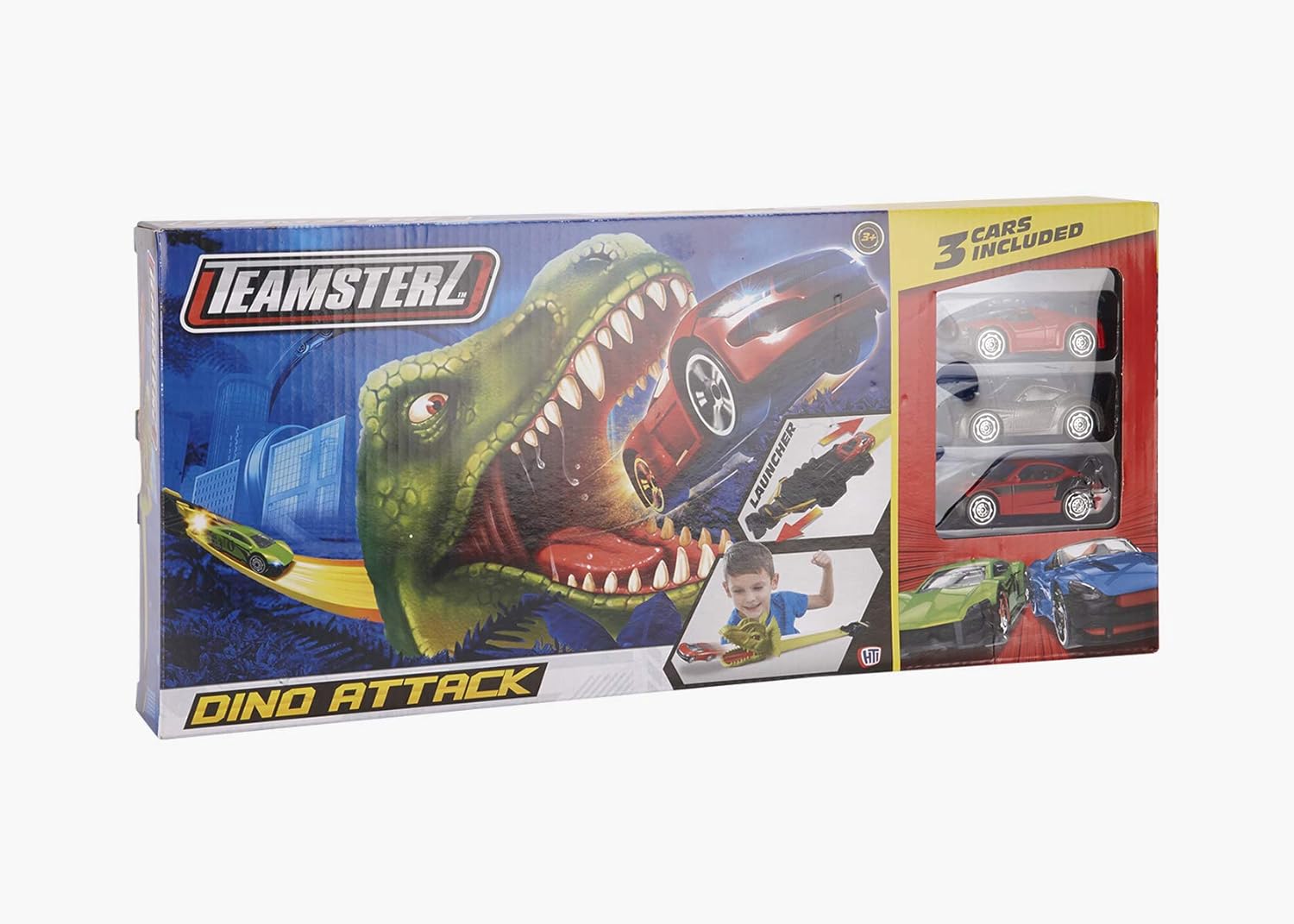 Dino Attack track for endless play! Launch the cars by placing them on the launcher and seeing them fly through the open jaws of Dino!