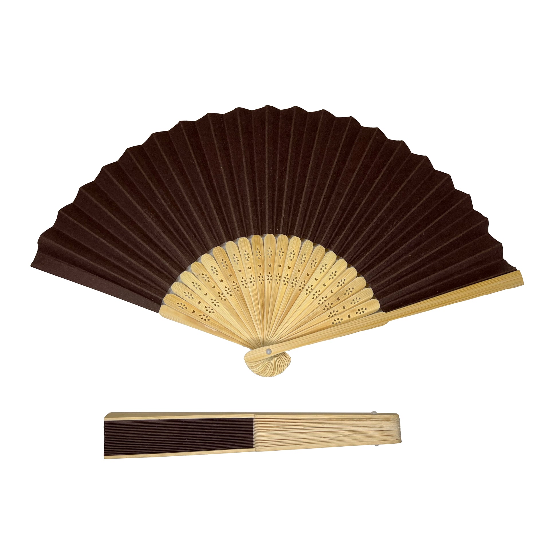 Brown Paper Foldable Hand Held Bamboo Wooden Fan by Parev. With 23 Pieces of Bamboo Ribs. Size open: 21cm x 37cm approx. Great for decorations, weddings and summer events to keep cool. Perfect for indoor and outdoor events. The fans are easy to use and can be opened and closed with a simple flick of the wrist. The bamboo handle is lightweight and comfortable to hold, making it easy to carry with you wherever you go. Available in a wide range of colours from the Parev range.