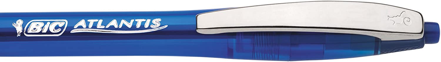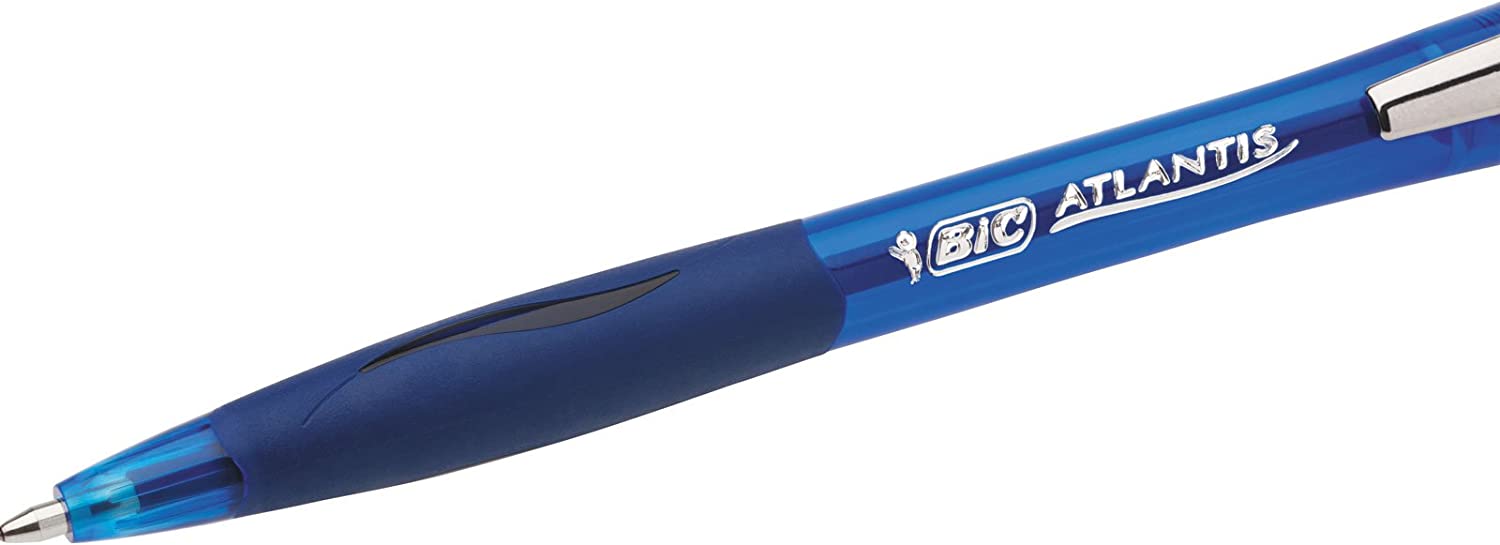 Bic Atlantis Premium Retractable Ballpoint Pen Medium Blue. Cushioned grip. Vivid consistent and super smooth ink. Medium line width.
