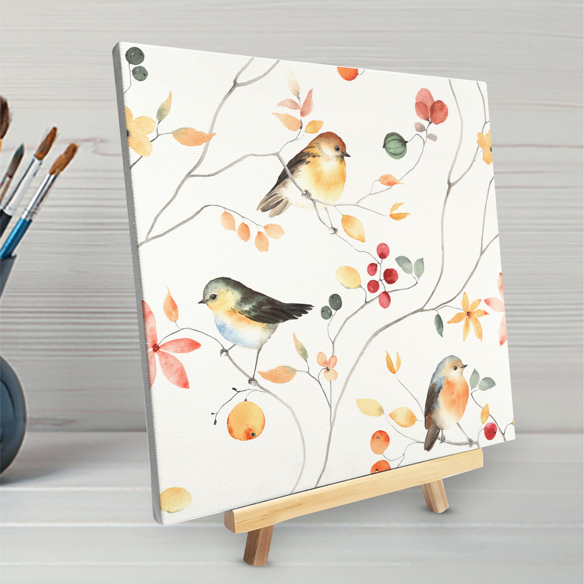 Pack of 6 25x25cm Canvas and Wooden Easel Set. The canvas size is 25x25cm with the wooden easel approx size 18x24cm. White Canvas and Natural Colour Easel. Wooden Easel Tripod is light and strong and can be used to display other other items. Canvas is made of mixed linen material, with fine texture and easy to paint. Ideal for arts, crafts, art classes, children, painting, home decoration, retail display, display pictures, business cards, wedding decorations.