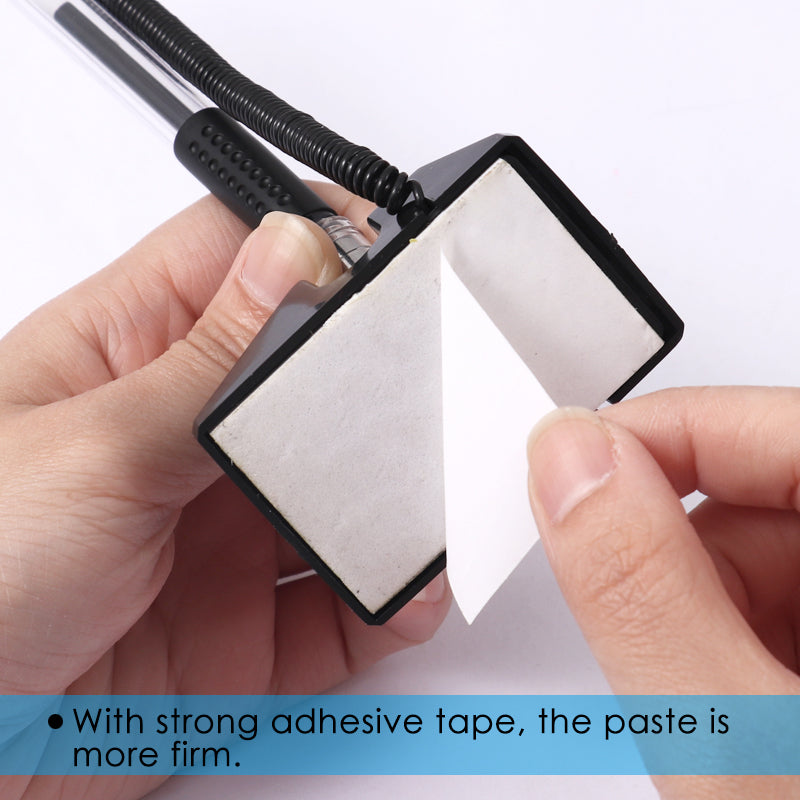 Black Desk-Top Gel Pen. Black, 0.5/0.7/1.0mm. Material: Plastic. Comes in black and blue, colour selected at random. Sticky base bottom. Experience seamless writing with our Black Desktop Reception Gel Pen, designed for smooth, uninterrupted ink flow. This sleek, professional pen features a durable gel ink formula that glides effortlessly across any paper type, ensuring crisp and clear lines every time. With its elegant design and secure base, it's the perfect addition to any reception area, office desk or bank. Combining functionality with a touch of sophistication.