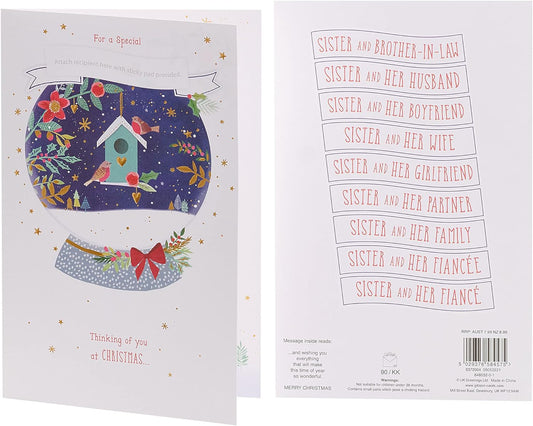 Wish Your Sister In Law A Very Merry Christmas With This Stunning Christmas Card. Just For You Sister In Law, You're Such A Very Special Part Of The Family. Beautiful Card With Glittered Finish and Full Colour Insert. Comes With Matching Envelope. Approx. Size 230mm x 150mm. Inside Message Reads: Hope you have a lovely Christmas and a very happy new year just the kind that someone as wonderful as you deserves. Merry Christmas with Love.
