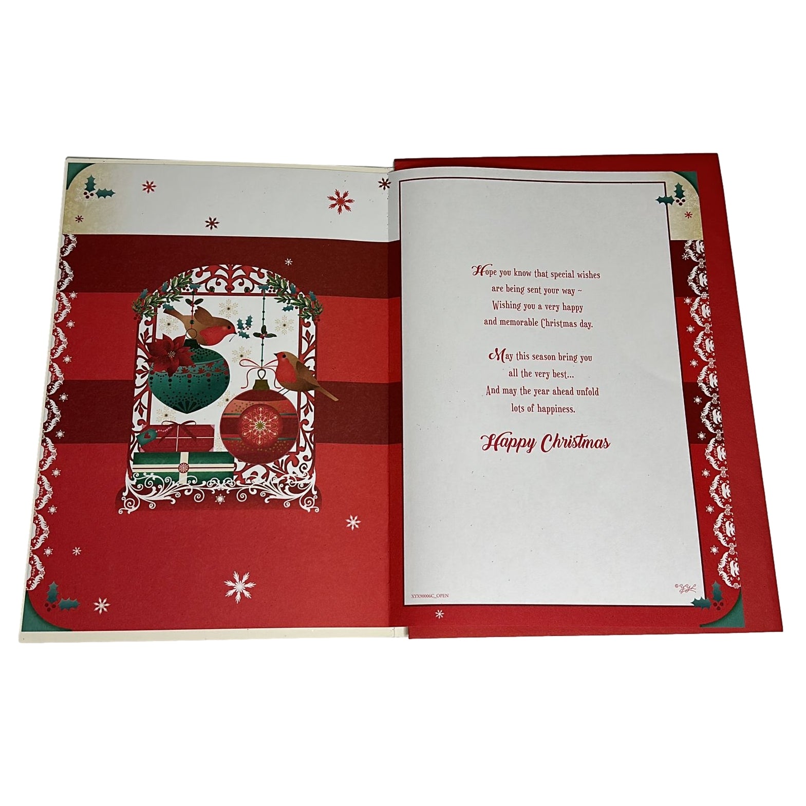 Celebrate the season with this elegant Christmas card for your sister and brother-in-law, featuring two charming robins perched on ornate Christmas baubles. Set against a rich red background with green and gold accents, the intricate ornaments shimmer with glitter, adding festive sparkle and holiday magic. Traditional patterns and warm, celebratory colors create a cozy, joyful atmosphere, perfect for spreading seasonal cheer. The beautifully detailed design captures the warmth and love of the holidays, making this card an ideal way to show your appreciation and affection. Whether displayed on a mantel or kept as a keepsake, it’s a heartfelt reminder of love, joy, and festive spirit that your sister and brother-in-law will treasure for years to come.