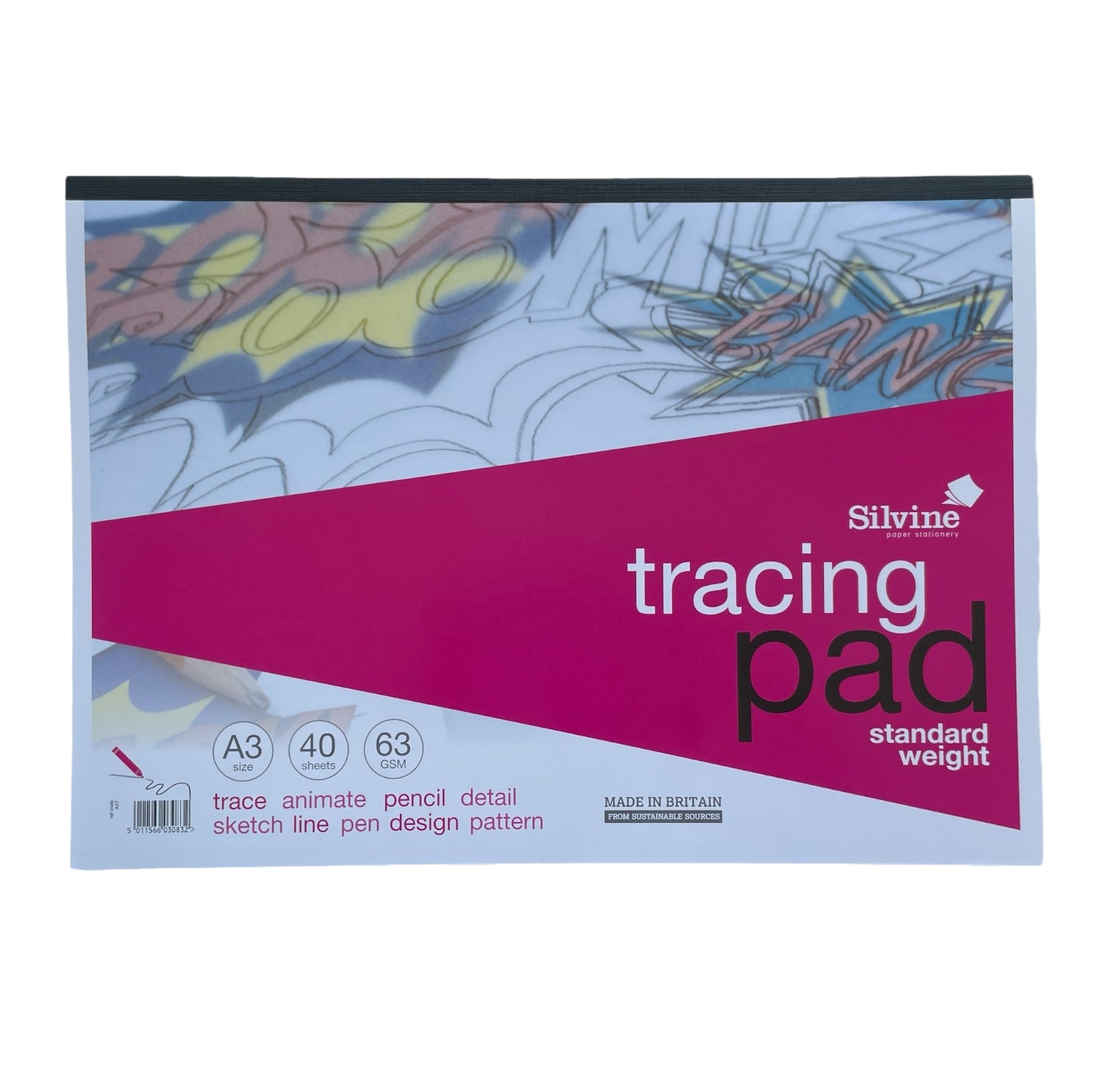 A3 40 Sheets Tracing Pad. 63gsm quality tracing paper. Glue bound for easy page removal. Size: A3 (420 x 297mm).