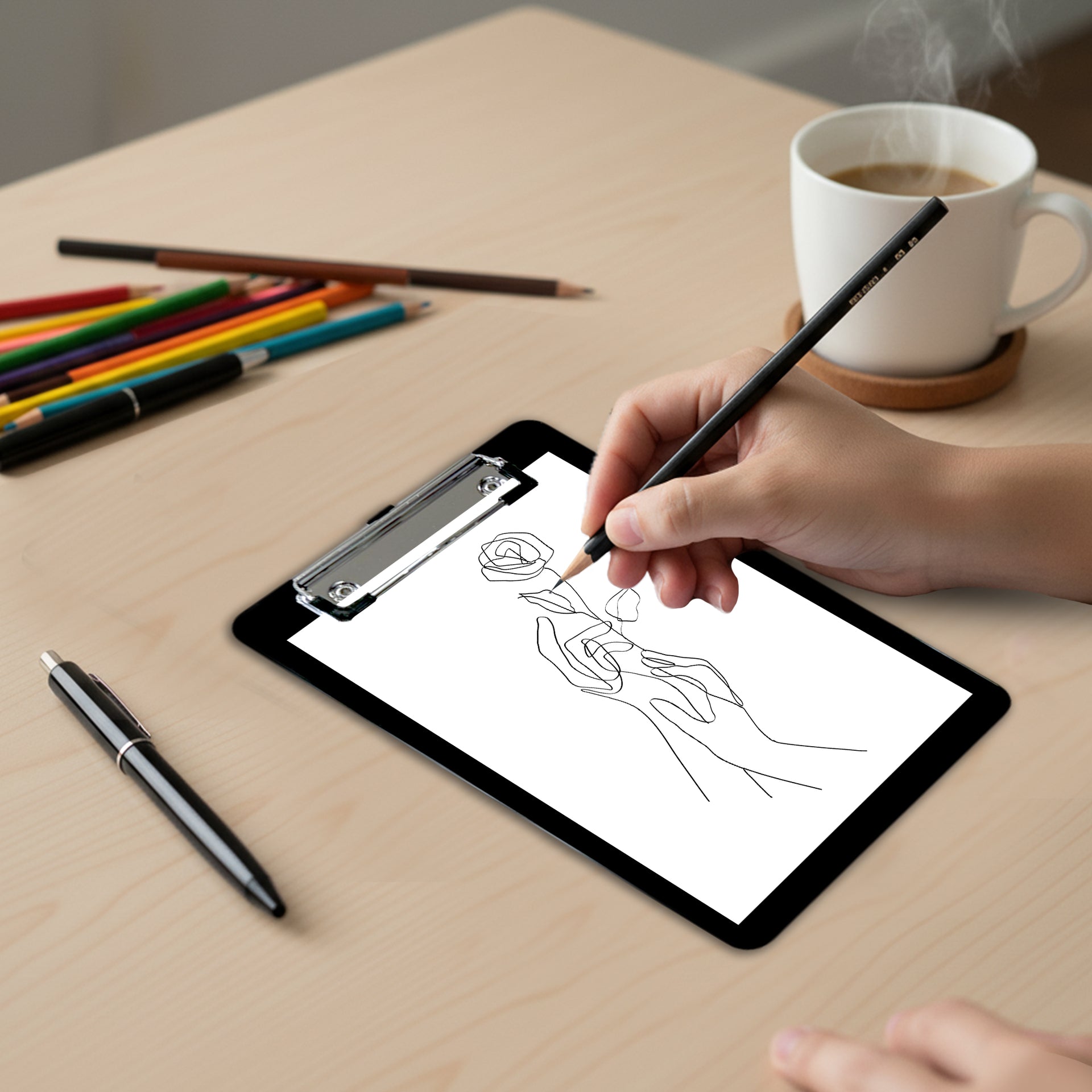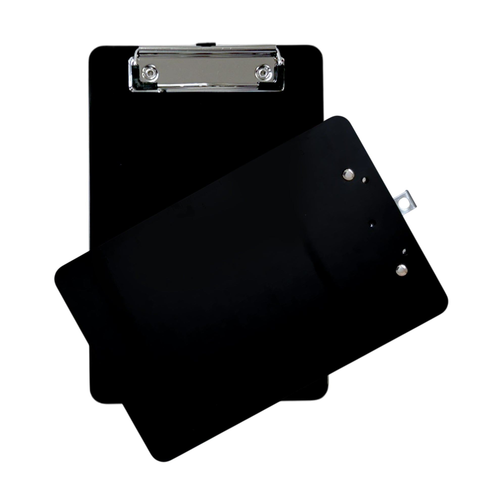 Quality A5 Black Clipboard. Includes a Ruled edges on both side. Size of Clipboard: 226mm x 150mm. Includes Hanging Hole. Black Plastic on Edge of Clips to keep documents safe.