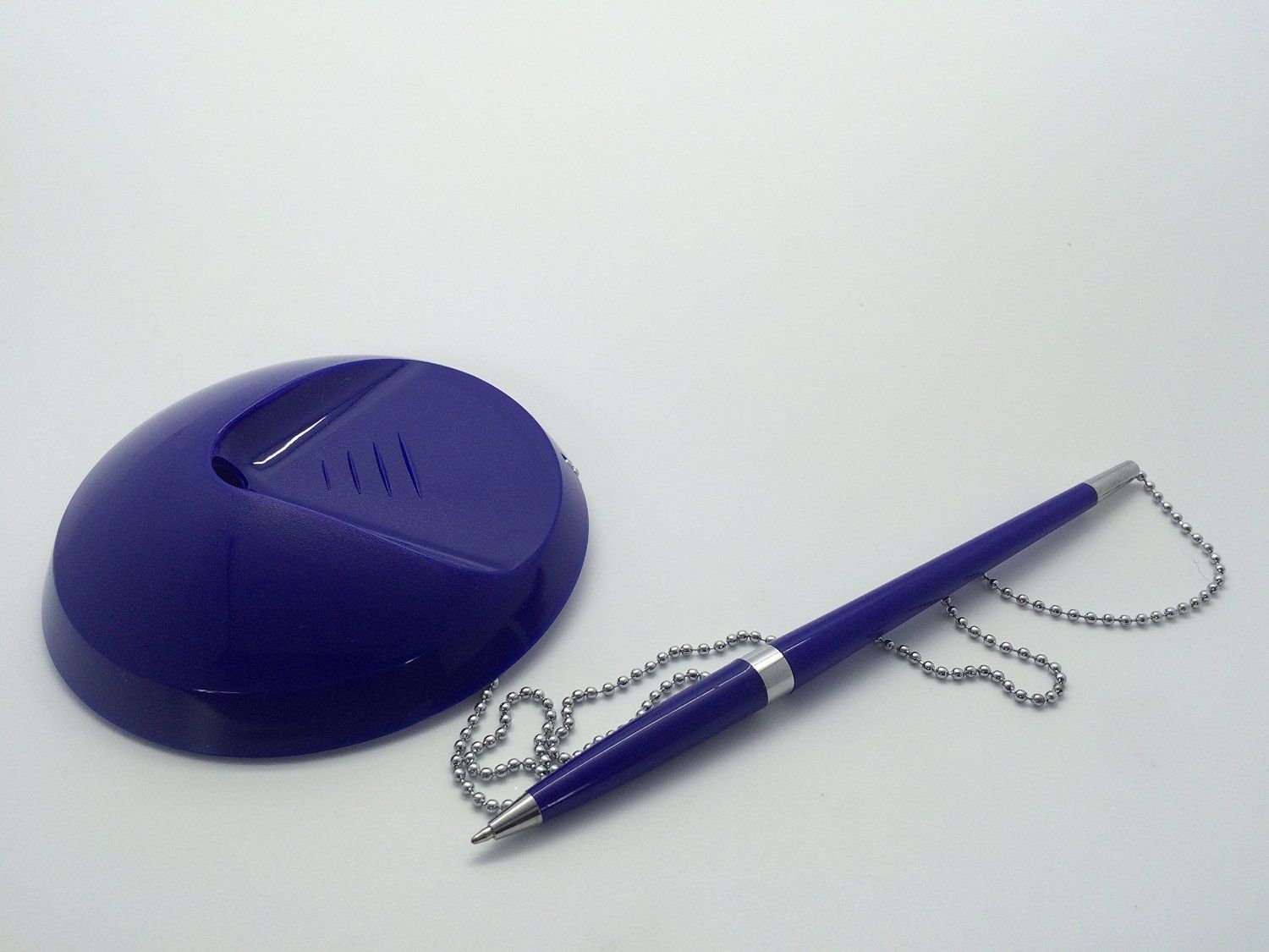 Janrax Blue Reception Pen with Chain. Durable metal chain to keep pen secure. Includes pealable sticky base to stick to surfaces if required. Ballpoint Pen with Black Ink. Replacable Black and Blue refills available in the Janrax Range.