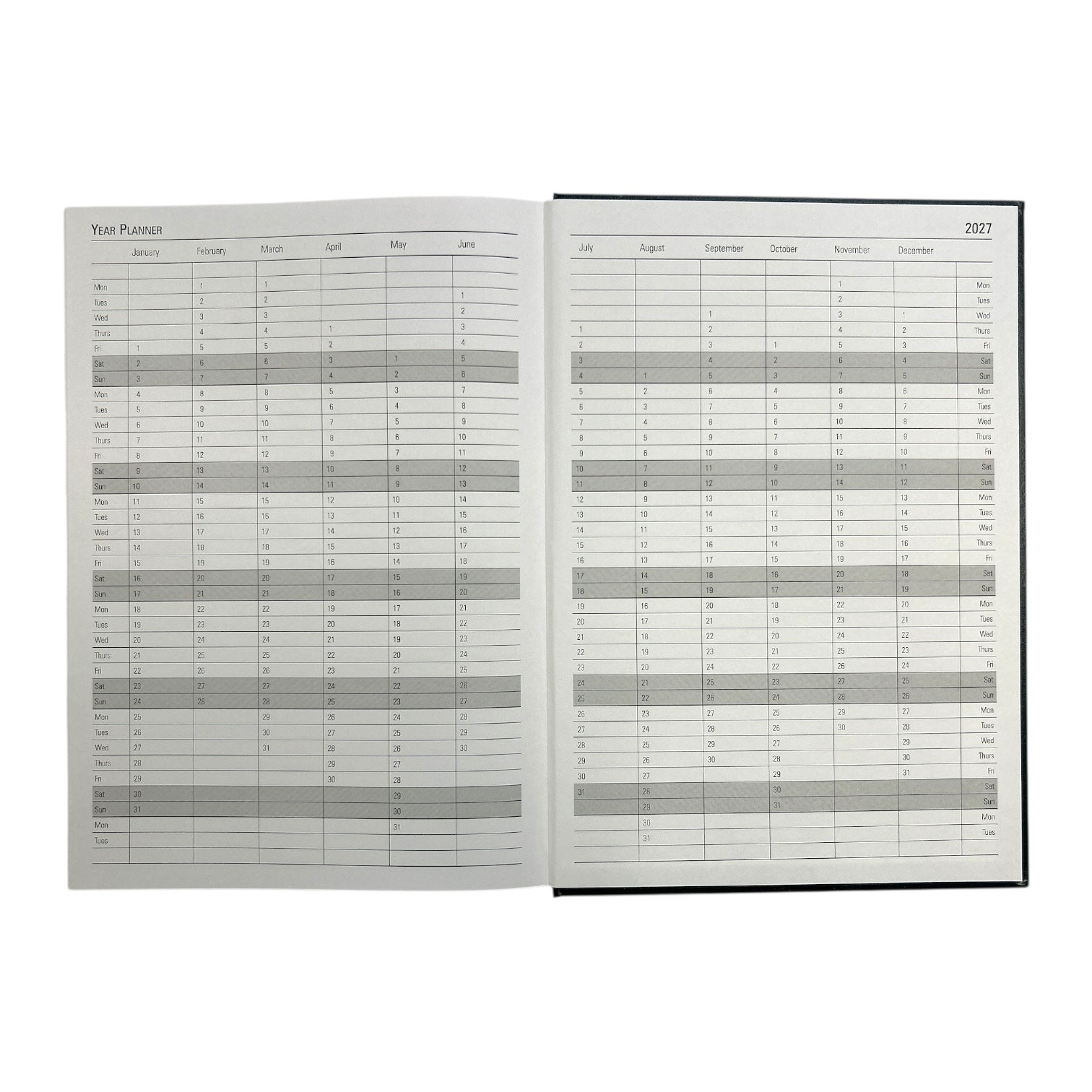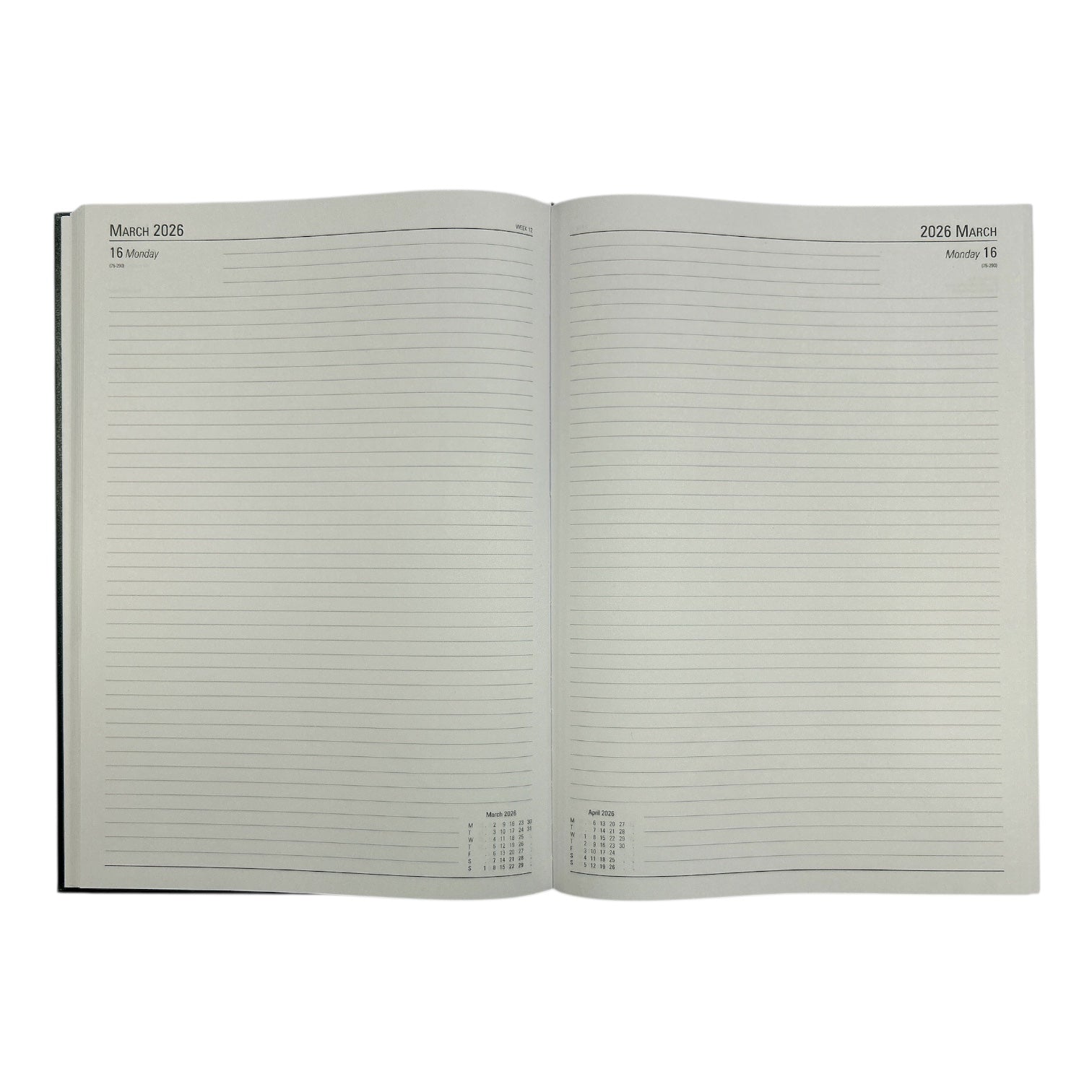 2026 A4 2 Pages Per Day Burgundy Desk Diary by Janrax. This 2 pages per day diary is ideal for meetings, appointments, deadlines and other plans, with a reference calendar on each page for help planning ahead. The diary also includes current and forward year planners, with a ribbon page marker for quick and easy reference.