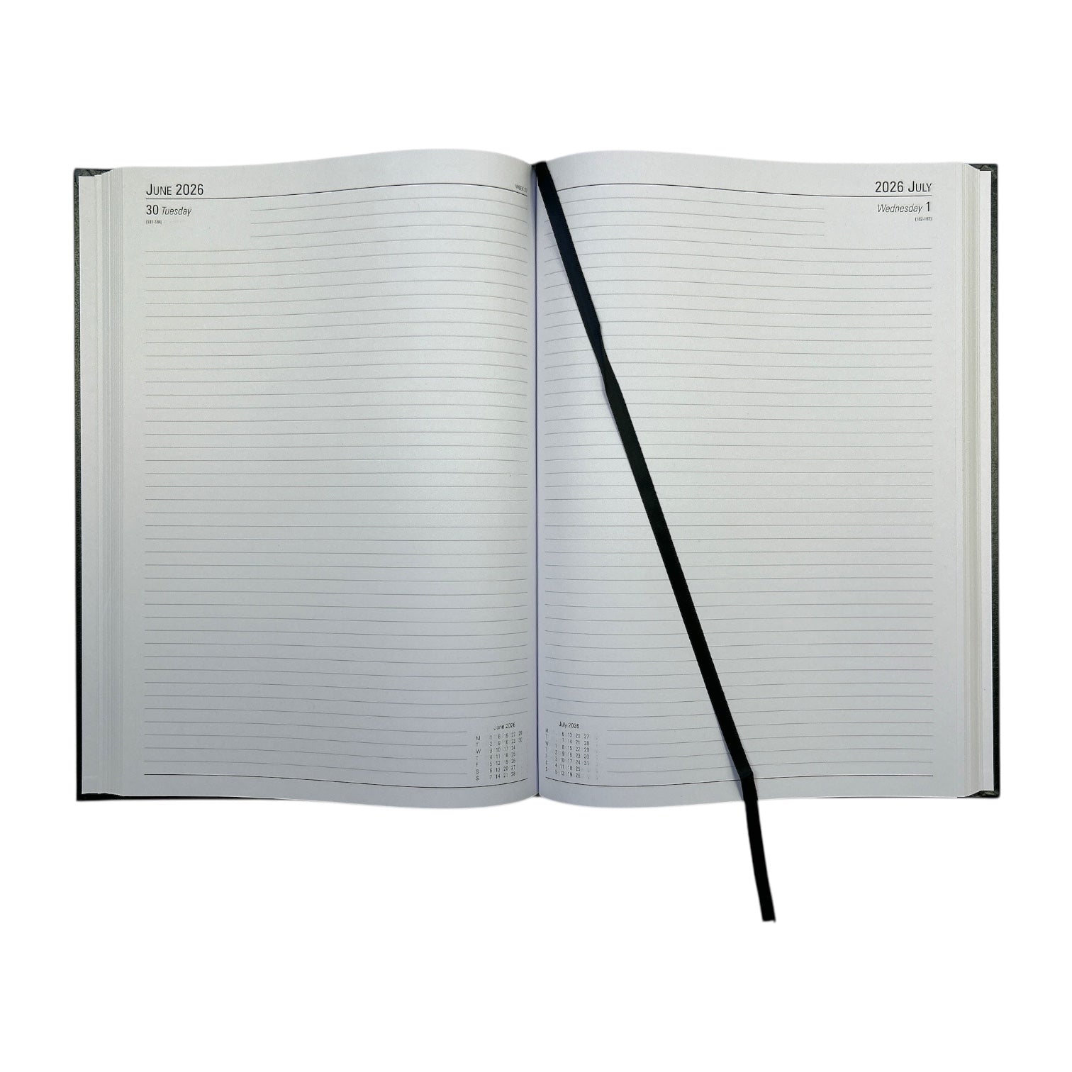 2026 A4 Day Per Page Black Desk Diary by Janrax. This day per page diary is ideal for meetings, appointments, deadlines and other plans, with a reference calendar on each page for help planning ahead. The diary also includes current and forward year planners, and a ribbon page marker for quick and easy reference.