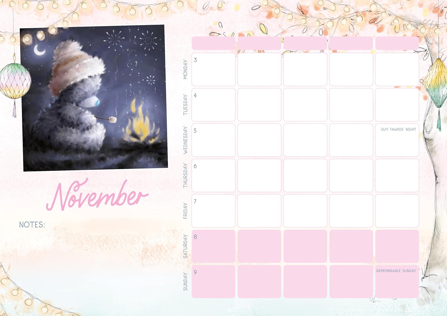 CUTE TATTY TEDDY 2025 FAMILY ORGANISER - adorable illustrations of Tatty Teddy in different artwork styles are featured on every single page of this sturdy wire-bound calendar WEEK TO VIEW - each page has plenty of space for the week's reminders to be recorded, from birthdays and school clubs to parties, appointments and special events FIVE COLUMNS FOR EACH WEEK - family members can have their own designated column to ensure your busy schedules stay on track! PREMIUM QUALITY RECYCLABLE PRODUCT - all Me to You diaries and calendars are made from high quality card and paper to ensure durability throughout the year (please remove wire binding before recycling)