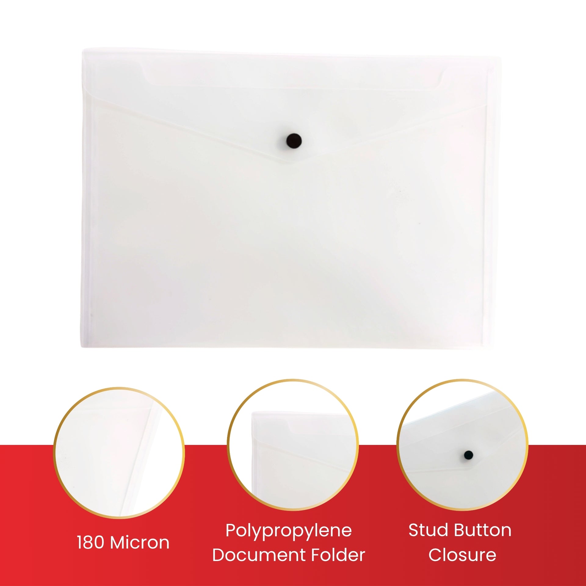 Pack of 20 Janrax A4 Clear Document Wallets - Button Stud Folder