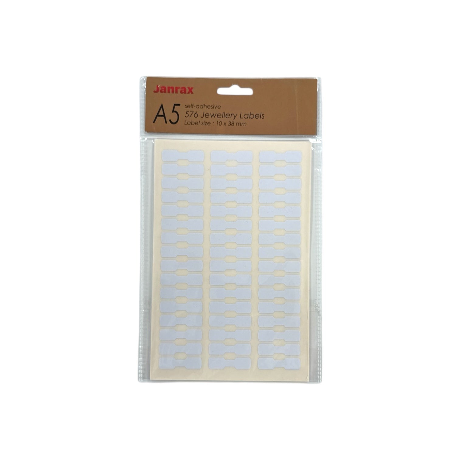 Pack of 6912 White Jewellery Labels 10x38mm. Organise and label your jewellery with ease using this pack of 6912 white jewellery labels. Each label measures 10x38mm and is designed with a slim shape, perfect for looping around rings, chains, watches, and other small items. Ideal for retail displays, stock management, pricing, or personal organisation. Made from durable, easy-to-write-on material for clear labelling and a professional finish.