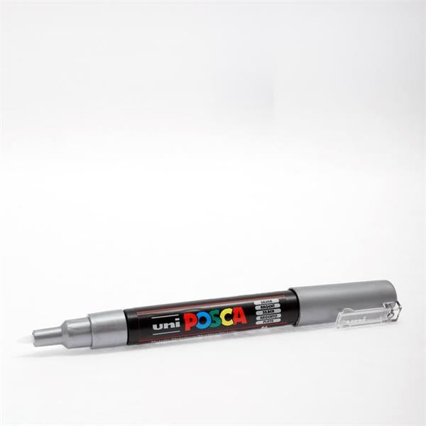 PC-1M 0.7mm Bullet Tip Silver Permanent Marker by Uni Posca. Ultra Fine Round Tip. Poster coloured marker. Opaque water based ink.