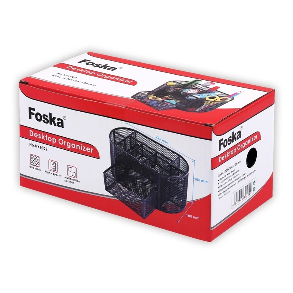 9 Compartment Wire Mesh Desktop Organiser. Size: 22.3 x 10.8 x 10.8cm. The 9 Compartment Wire Mesh Desktop Organiser, with its dimensions of 22.3 x 10.8 x 10.8cm, is a compact yet highly efficient solution for keeping your desk clutter-free and well-organised. This organiser is perfectly suited for storing a wide range of office supplies, including pens, pencils, pins, and other small accessories that tend to accumulate on a desk. Crafted from durable wire mesh, it not only offers longevity but also adds a touch of sleek, modern aesthetics to any workspace. The design features nine compartments of various sizes, allowing for easy segmentation of different items for quick accessibility. This ensures that everything you need is within reach, without taking up too much desk space. The open mesh design not only contributes to its lightweight and sturdy construction but also allows you to see the contents of each compartment at a glance, saving time when searching for specific items. Ideal for office workers, students, artists, and anyone looking to streamline their workspace, this desktop organiser is an essential tool for enhancing productivity and maintaining an orderly environment. Its simple, functional design makes it a versatile addition to any desk, helping to keep your work area tidy and your mind focused.