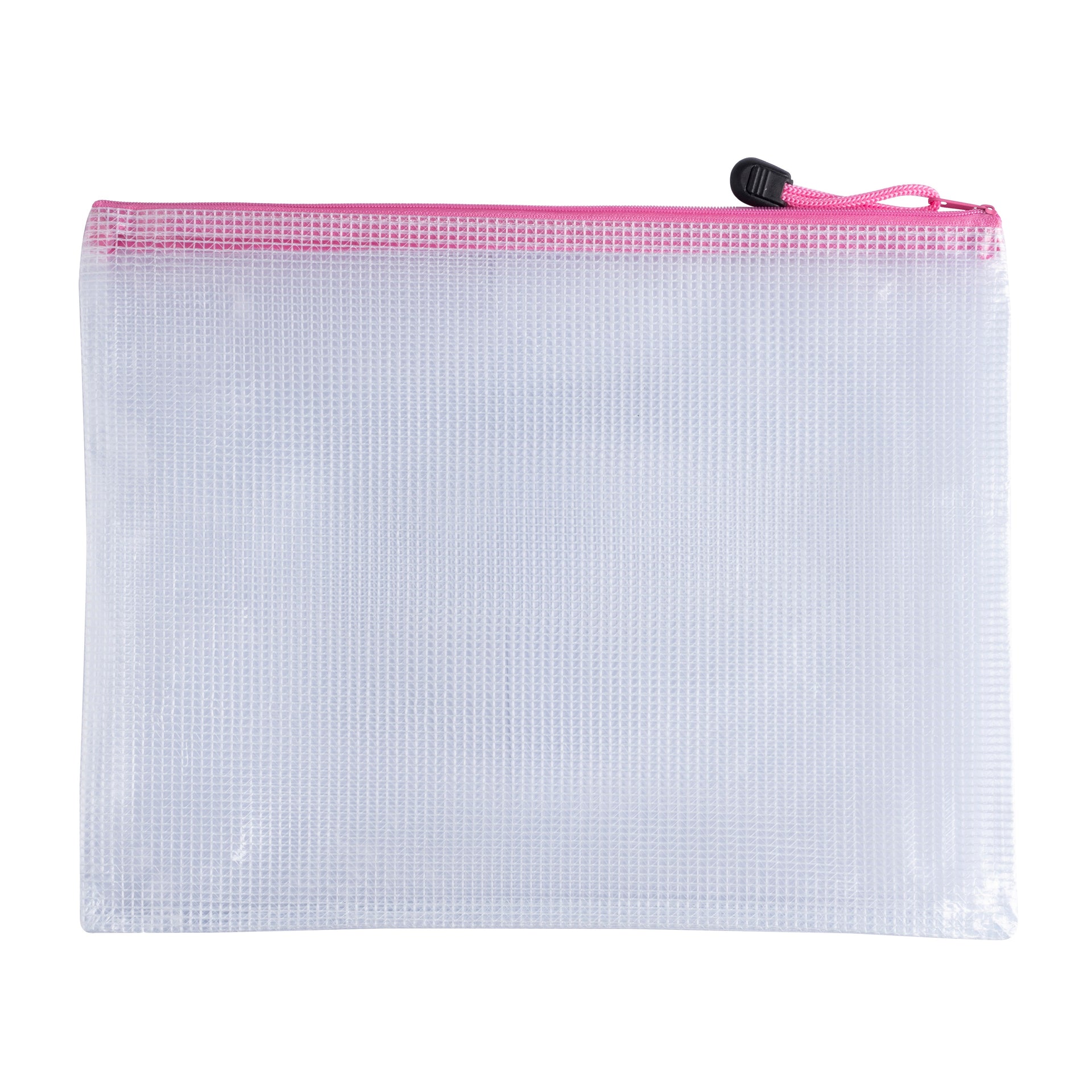 Pack of 12 A5 Pink PVC Mesh Zip Bags