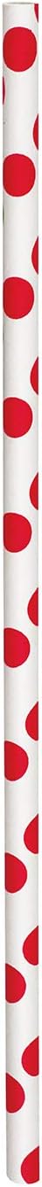 Pack of 10 Ruby Red Dots Paper Straws. Polka Dot Red Paper Straws measure approximately 21cm (8.25") in length. Classic polka dot paper straws will top off party drinks in style at a birthday party, garden party, Christmas party or circus party. Paper straws can also be used as simple cupcake toppers, cake banners, or placed in a mason jar for an easy table decoration.