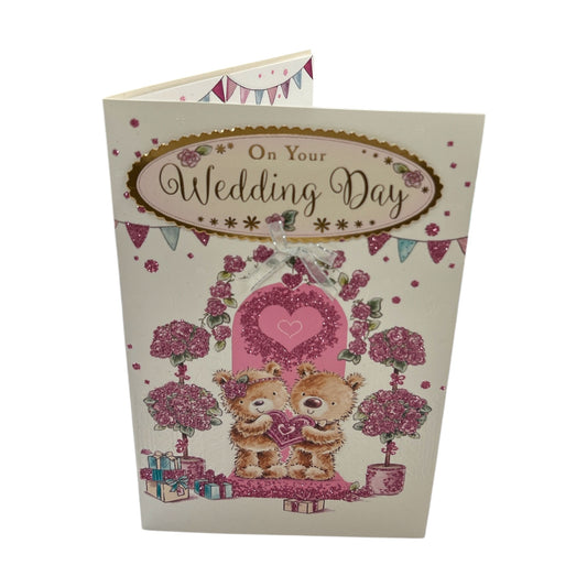 Congratulations to A Special Son And Daughter In Law Wedding Day Opacity Card. Approx Size: 270 x 185mm.