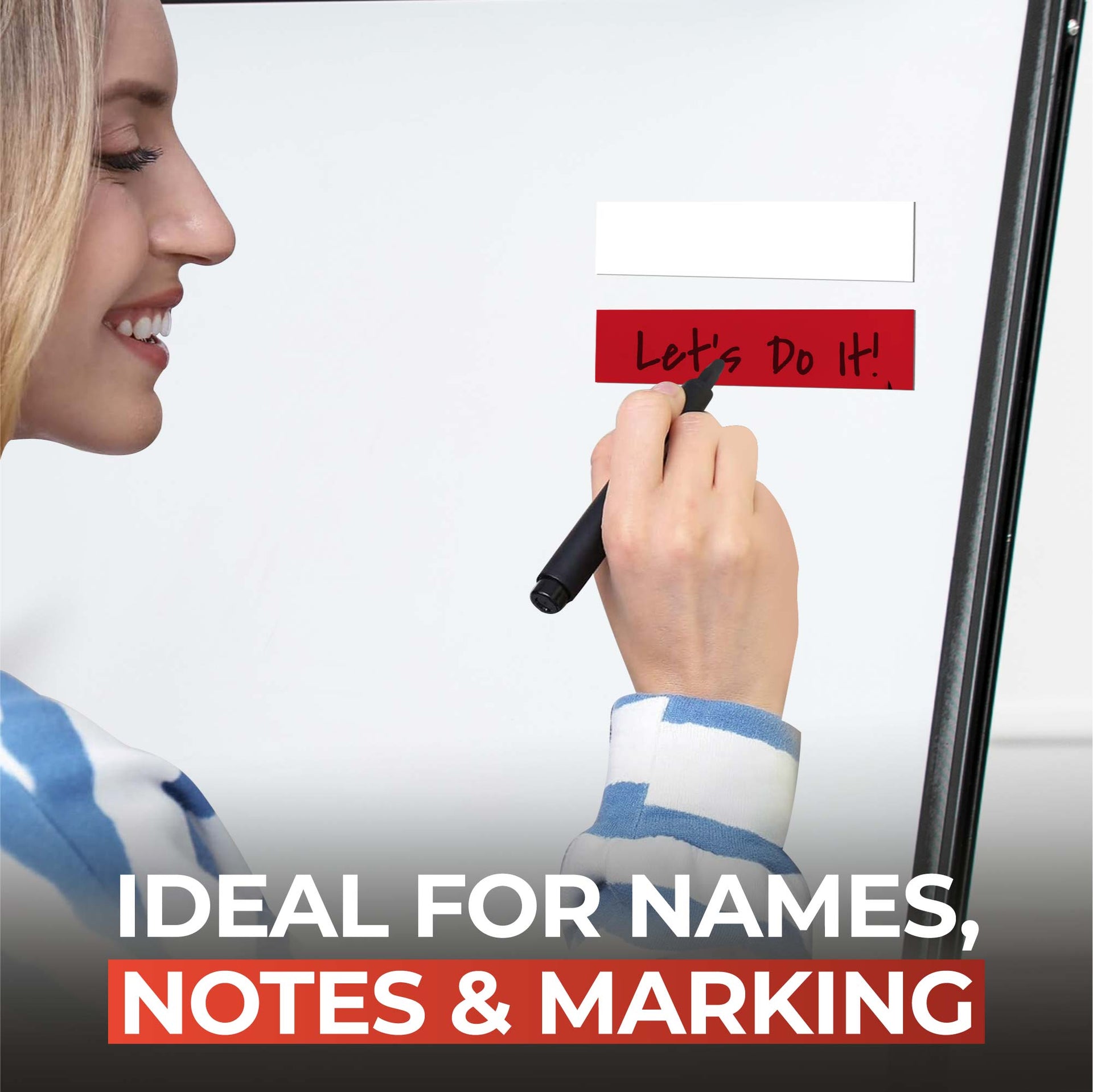 10m White Magnetic Strip Roll with Dry Wipe Clean Finish. Approx Width of Strip: 20mm. Perfect for homes, offices, and classrooms, this strip boasts a dry wipe clean finish for easy labelling and note-making. The dry wipe clean finish allows you to write, erase, and rewrite as many times as needed. Perfect for temporary notes, labels, or reminders. Its robust magnetic backing ensures a secure grip on any magnetic surface. Customisable to your needs, simply cut to the desired length and apply. Made with premium materials, which makes it very durable. Ideal for labelling, brainstorming, or creating interactive magnetic boards on the go. Can be used on magnetic whiteboards, fridges, etc.