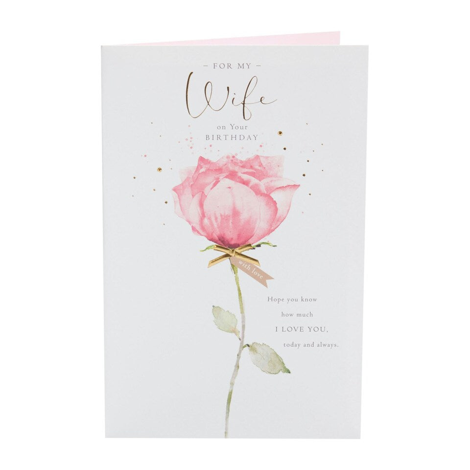 Tell your wife that you love her with all your heart with this romantic birthday card, featuring a beautiful rose design, printed on premium quality board and finished with gold foil. VERSE: For all the special moments we've shared, and for the ones that are yet to come I feel so lucky to share them all with you... You bring so much happiness to my life, and I love you with all my heart. Hope You Have a Wonderful Birthday. SIZE: 165(w) x 254(h)