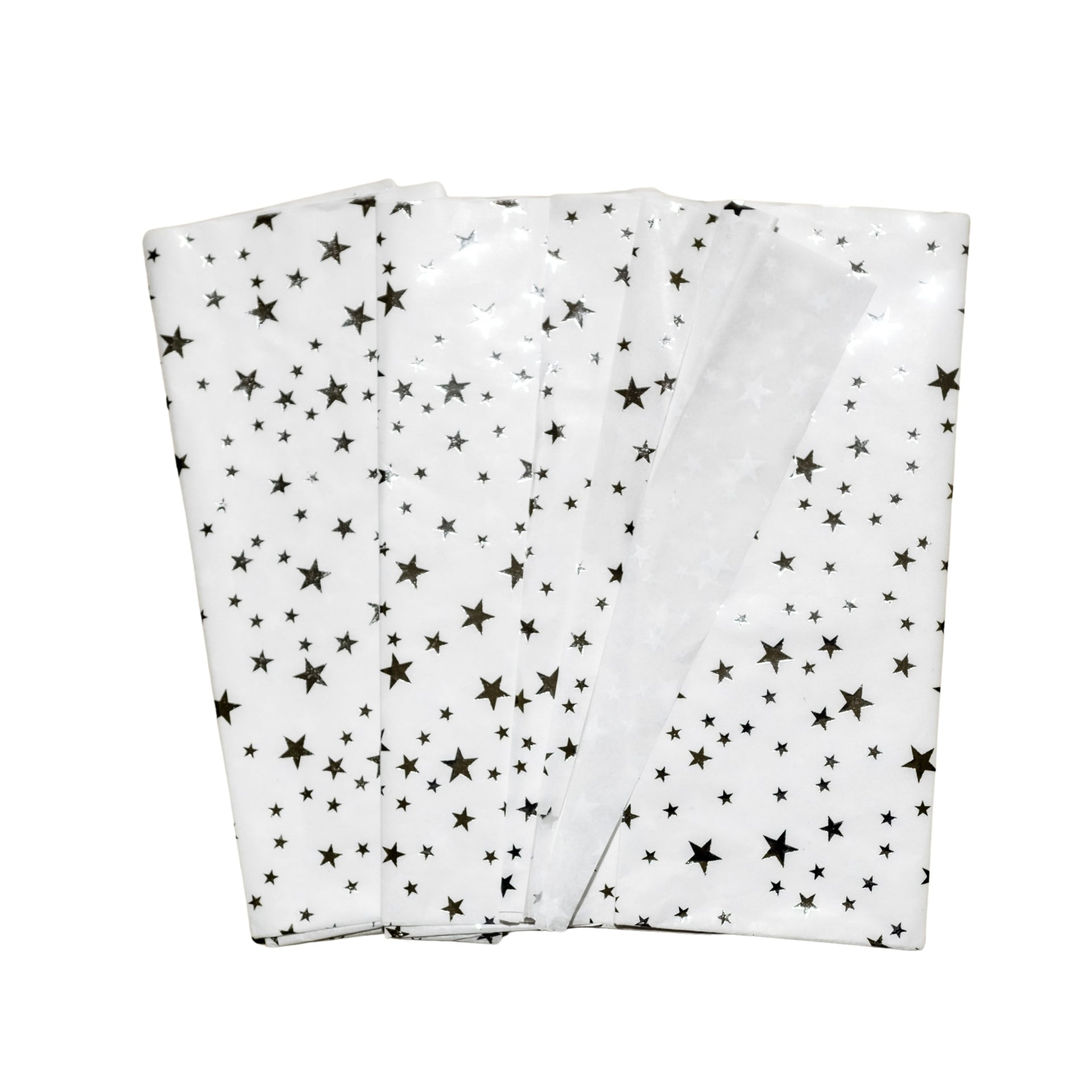 20 x Pack of 10 Stars Luxury Silver Metallic Plastic-Free 18gsm Tissue Paper Sheets 50x70cm - Patterned Tissue Paper for Xmas, New Year, Party, Wedding, Birthday Packing Present Gift Box DIY Art Crafts