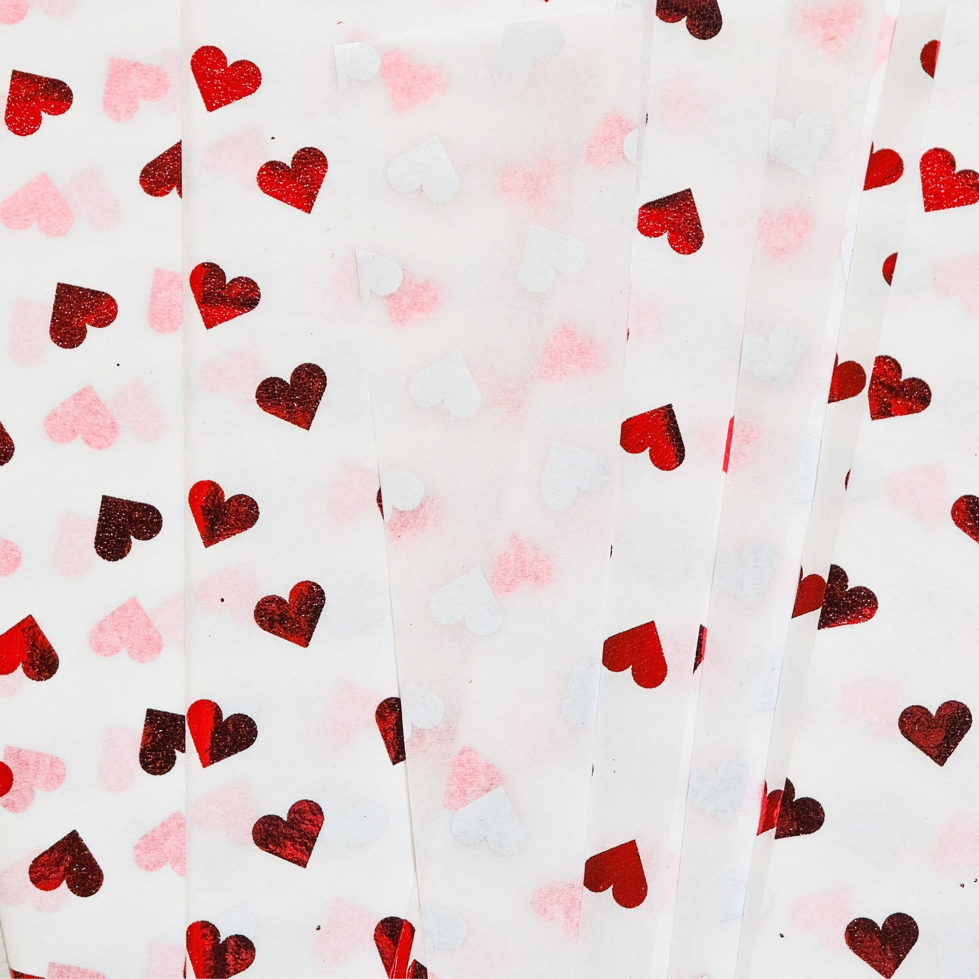 20 x Pack of 10 Valentine Hearts Red Luxury Metallic Plastic-Free 18gsm Tissue Paper Sheets 50x70cm - Patterned Tissue Paper for Xmas, New Year, Party, Wedding, Birthday Packing Present Gift Box DIY Art Crafts