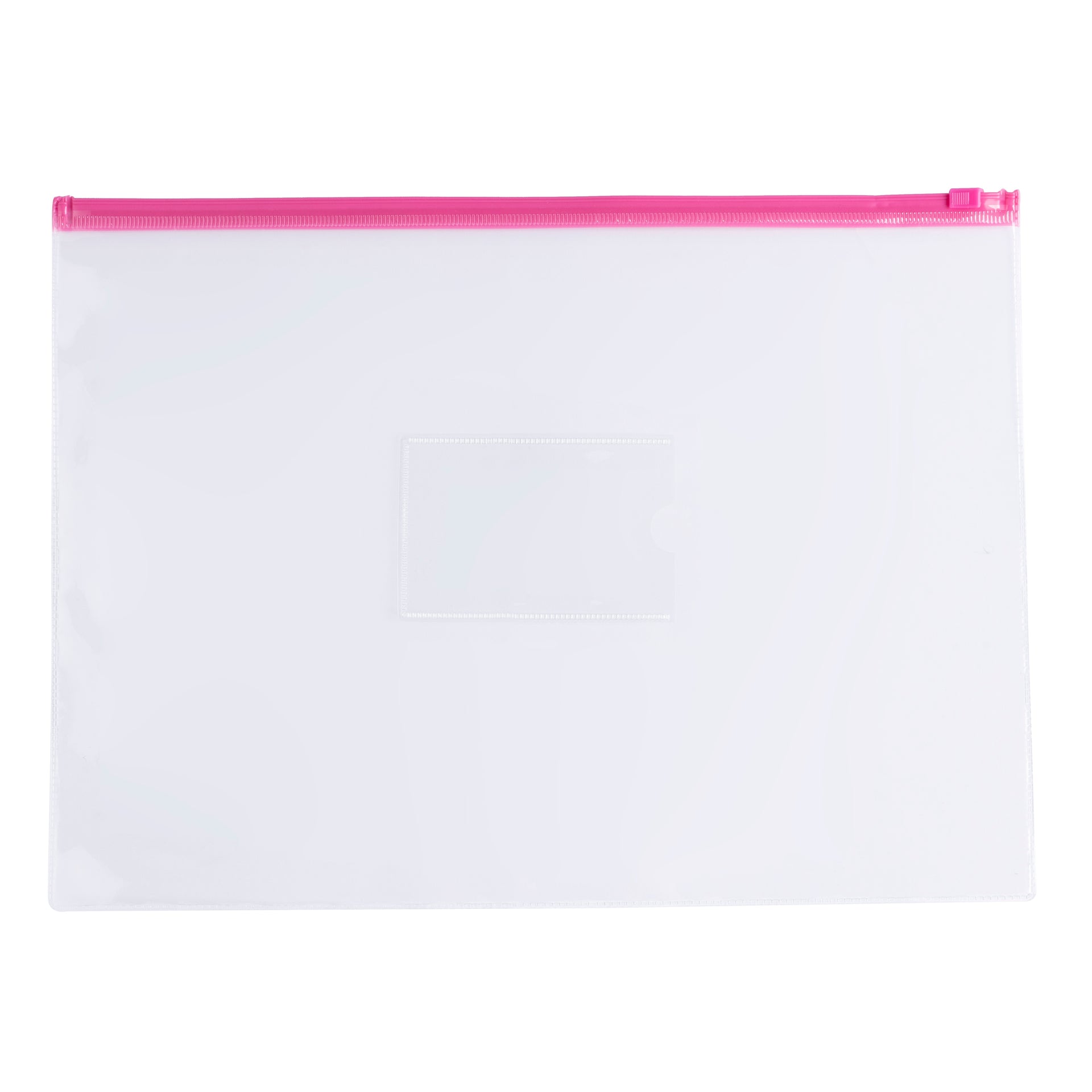 Pack of 12 A3 Clear Zippy Bags with Pink Zip. Strong, durable and weatherproof. Great for storing documents. Size: A3 (465x340mm). Includes a card holder for 90x60mm card. Slide lock protects contents from dirt and moisture. Thickness 160 microns. Ideal for School, Home and Office. Range of sizes available in the Janrax range.