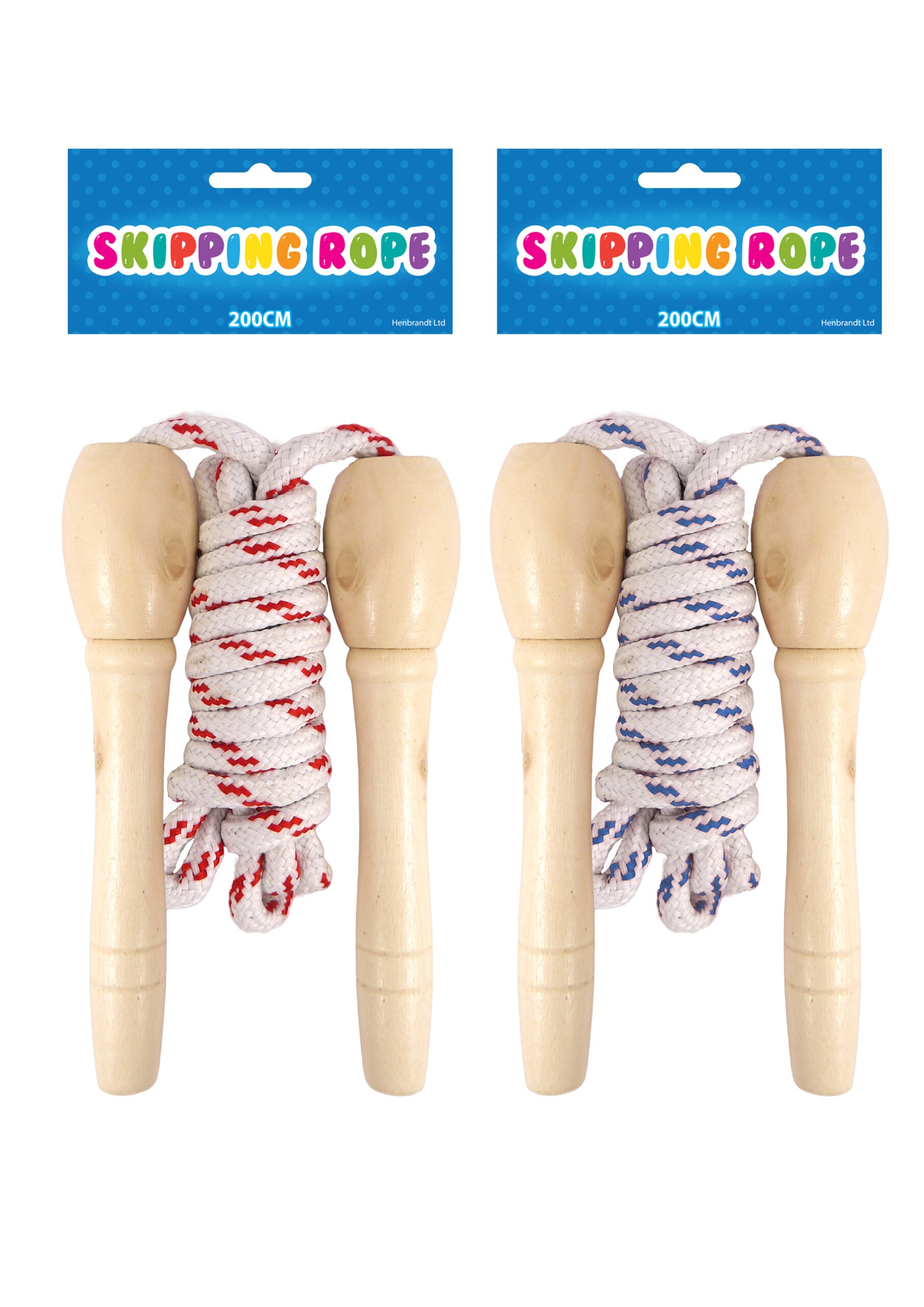 These skipping ropes make ideal presents, prizes, and summer toys. Available in two assorted colours. One random colour will be supplied. Length: 200cm