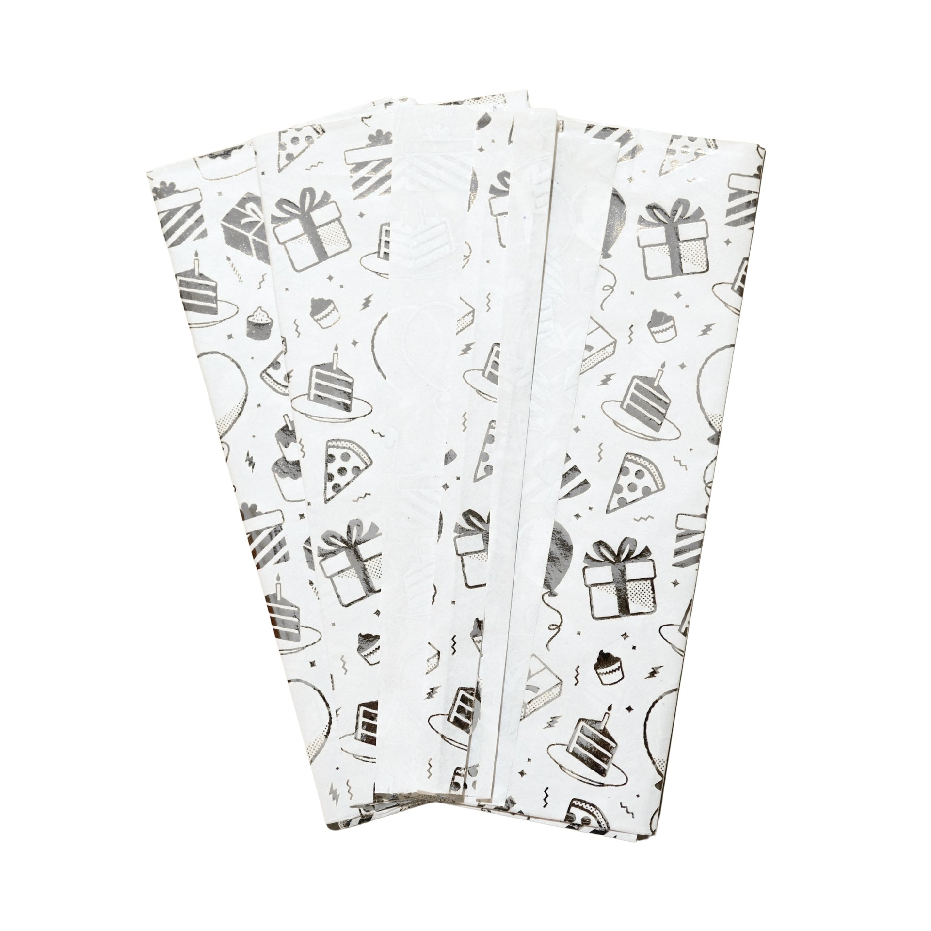 This birthday luxury silver metallic tissue paper is designed for stuffing, lining, and light wrapping. The pack includes 10 sheets of 18gsm plastic-free paper, each measuring 50x70cm. Suitable for decorative packaging and presentation use. The birthday-themed print makes it suitable for celebratory packaging.. Supplied as 3 Packs of 10.