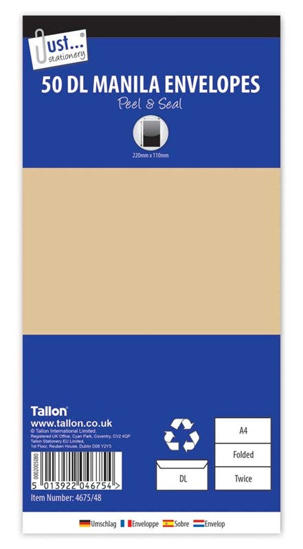 50 DL Peel & Seal Manila Envelopes.