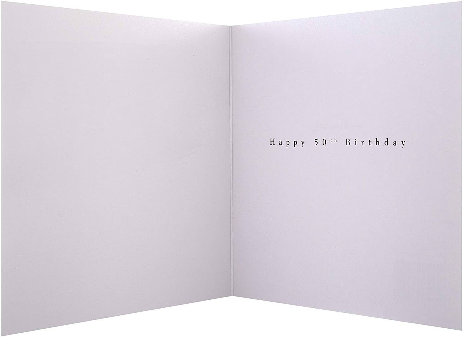 Celebrate a fantastic fiftieth in style with this elegant and sophisticated birthday card from Hallmark. Printed on 100 Percent Recyclable, FSC Certified Board. Message Inside Reads: Happy 50th Birthday. Features textured board, gold foil lettering and design details, and a co-ordinating branded envelope. Measures 16 cm by 16 cm, Within Standard UK 'Letter' Size Limits.