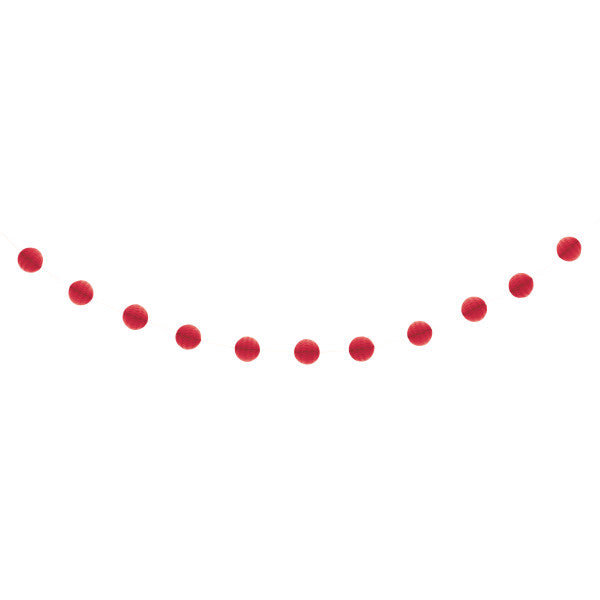 7ft Red Honeycomb Ball Garland. Tissue paper decoration measures approximately 7ft (2.13m) with 11 honeycomb balls each measuring 8cm (3"). Lovely addition to a birthday party, Christmas party, Valentines party or wedding. Drape across party tables, or attach to walls, mantelpieces or archways to add decorative flair to a celebration. Coordinate with other red party decorations and party supplies from Unique Party.