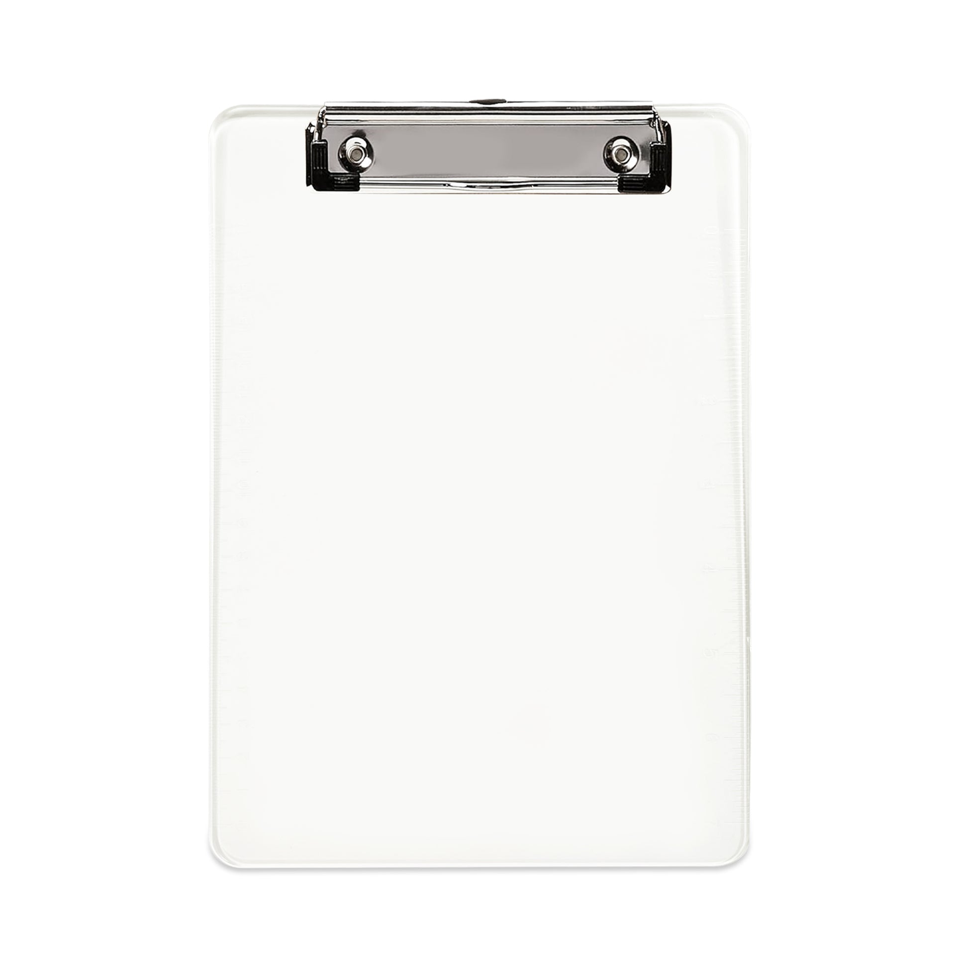 Quality A5 Clear Translucent Clipboard. Includes a Ruled edges on both side. Size of Clipboard: 226mm x 150mm. Includes Hanging Hole. Black Plastic on Edge of Clips to keep documents safe.