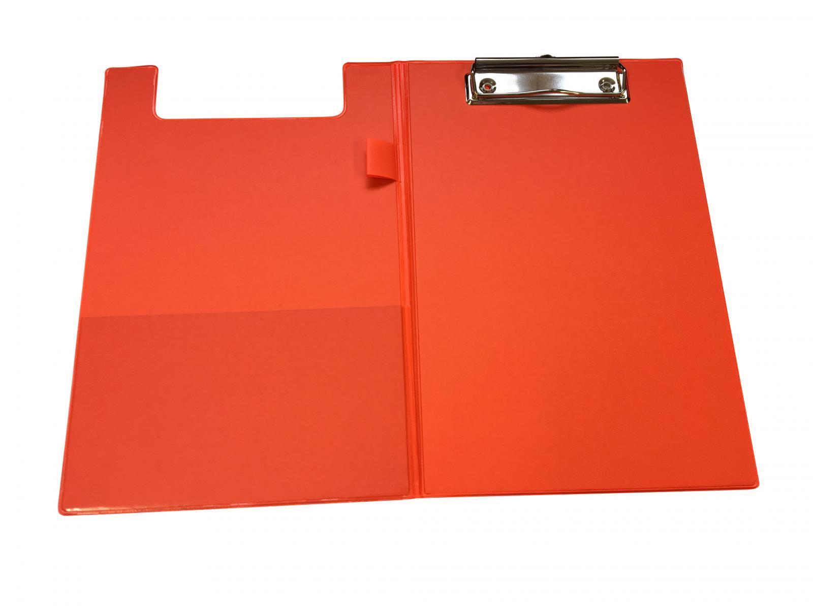 A5 Neon Orange Foldover Clipboard with Pen Holder