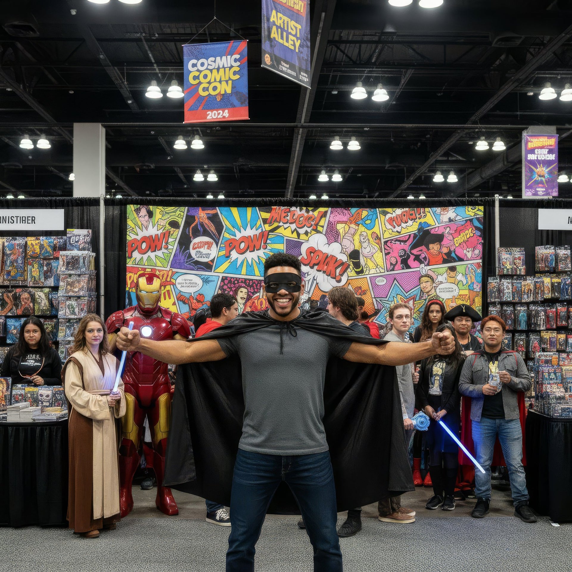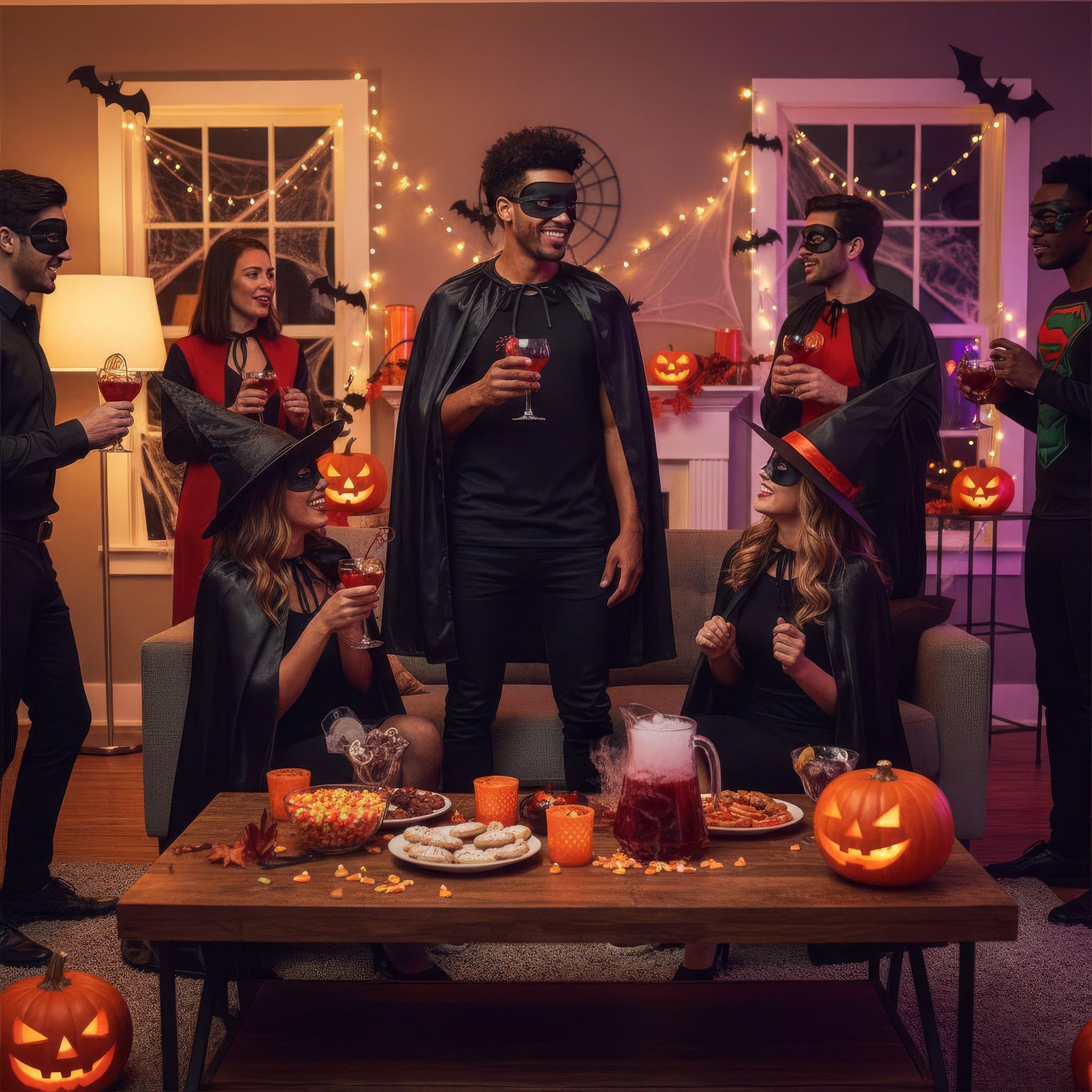 Adult Superhero Black Cape and Mask Fancy Dress Costume