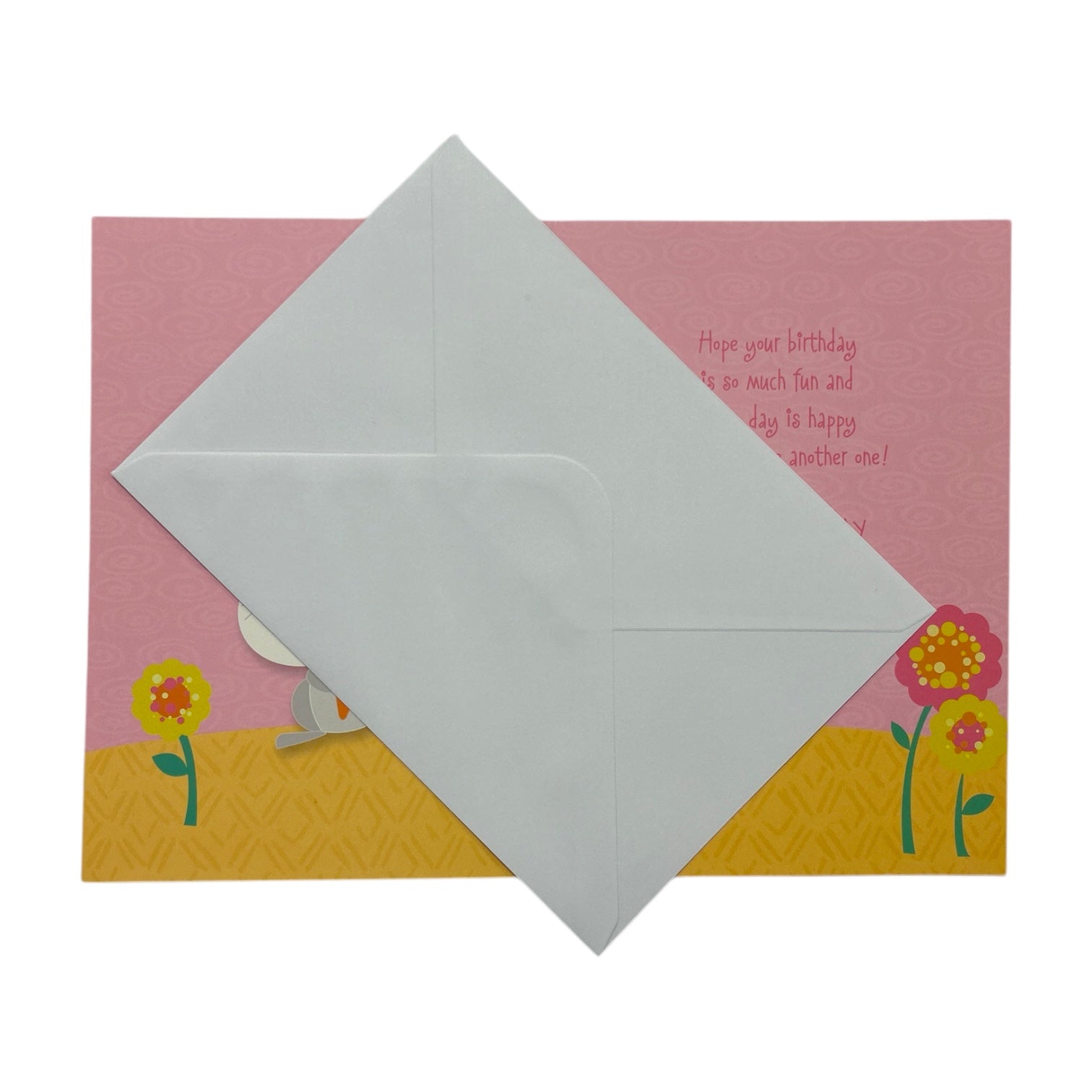 Celebrate a special 2nd birthday with this charming and playful birthday card! The design features a cute rabbit holding a carrot, with large expressive eyes, a friendly smile, and oversized ears, creating an endearing and fun atmosphere. The background is a soft pink hue, complemented by a golden glitter pattern, adding a touch of sparkle and festivity. The text "Birthday Wishes 2 TODAY" is prominently displayed above the rabbit in a bold, eye-catching font, making the birthday milestone the highlight of the design. Inside, the card continues with heartfelt birthday wishes, making it a perfect keepsake for a little one's second birthday celebration. The card comes with a coordinating envelope. Approximate size: 19.5 x 14 cm.