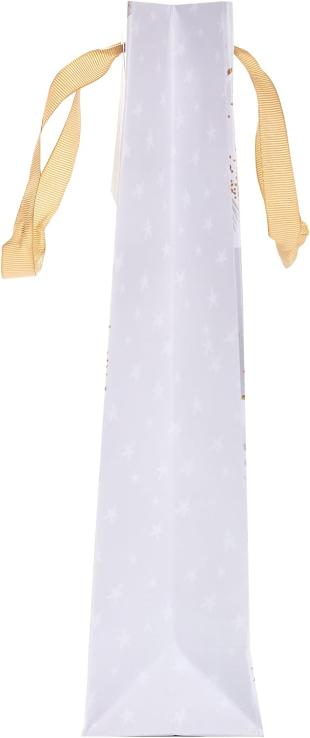 Add the optimum finishing touch to that celebration with this bottle bag featuring a gold foil balloons design. Bag Size: 325mm x 132mm x 325mm. Optimum wrapping solution for a variety of celebrations. This product is FSC-labelled, meaning you’re supporting responsible forestry and helping fight climate change, protect biodiversity, and support communities