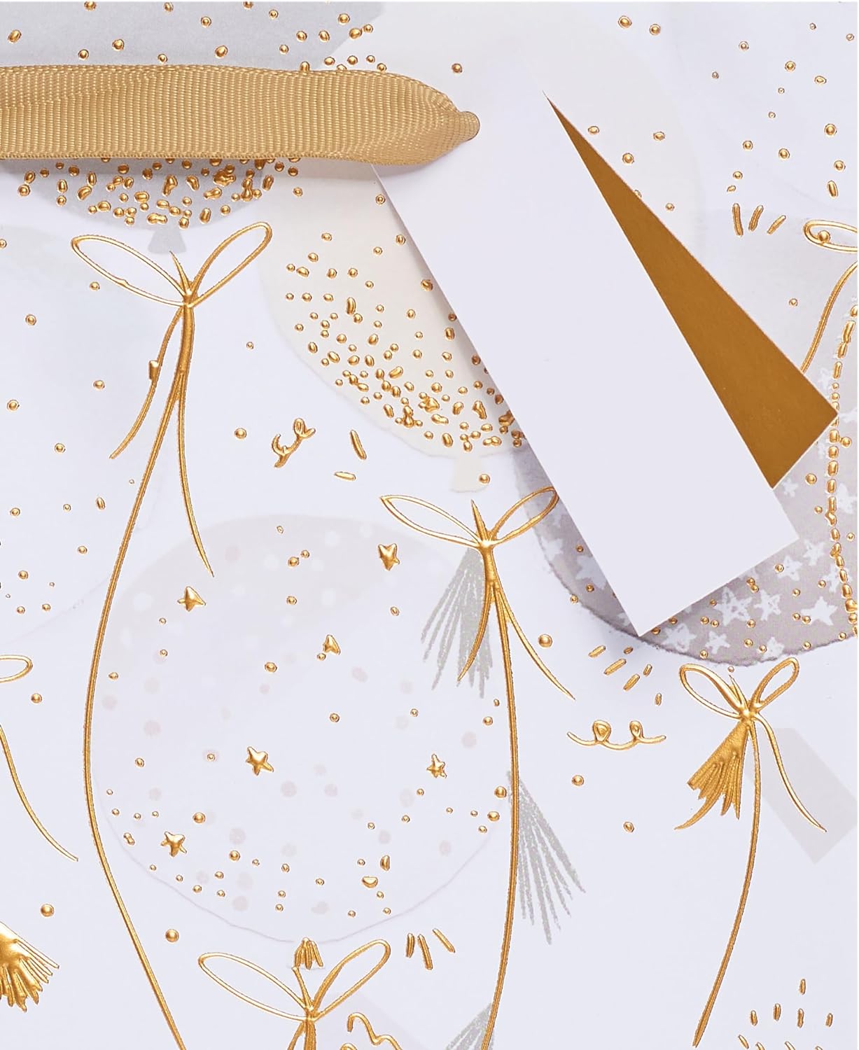 Add the optimum finishing touch to that celebration with this medium gift bag, featuring a gold foil balloons design. Bag Size: 190mm x 229mm x 89mm. Optimum wrapping solution for a variety of gifts and occasions. This product is FSC-labelled, meaning you’re supporting responsible forestry and helping fight climate change, protect biodiversity, and support communities