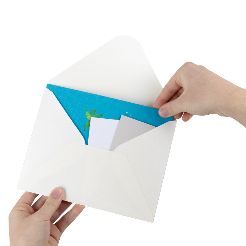 This vibrant 3D pop-up card captures the joy of a beachside escape, featuring a cozy hut, swaying palm trees, a striped umbrella, and a lounge chair with a relaxed figure soaking in the sun. The base is decorated with playful illustrations of sand, waves, and beach accessories, while the matching blue front cover showcases a simplified version of the scene with a palm tree and umbrella for instant shelf appeal. The layered paper design creates a cheerful, dimensional centerpiece that folds flat for mailing and stands beautifully when opened. Measuring 15 x 20 cm, the card includes a blank insert 8.5 x 13 cm for a personal message. Perfect for summer birthdays, vacation send-offs, retirement wishes, or anyone who dreams of a sunny getaway.