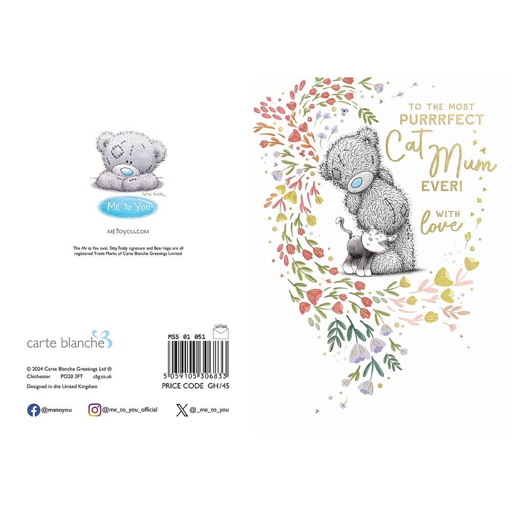 Bear and Flowers From The Cat Mother's Day Card. Message inside card reads: WISHING YOU A HAPPY Mother's DAY Card size: 7" x 5"