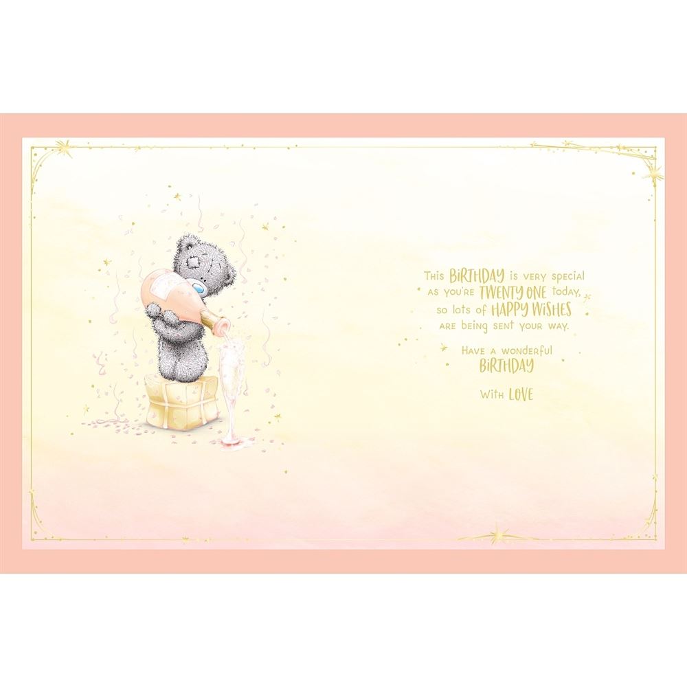 Message inside card reads: This Birthday is very special as you're TWENTY ONE today, so lots of happy wishes are being sent your way. Have a wonderful Birthday with love Card size: 12" x 9"