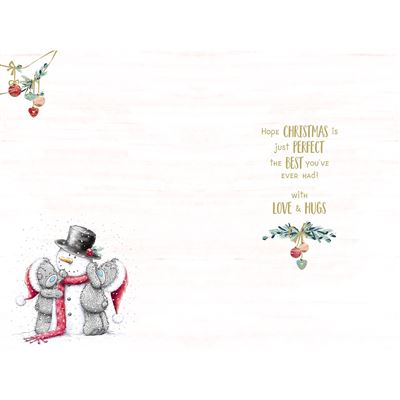 Message inside card reads: Hope Christmas is just perfect the best you've ever had! with Love & Hugs. Card size: 6" x 9".