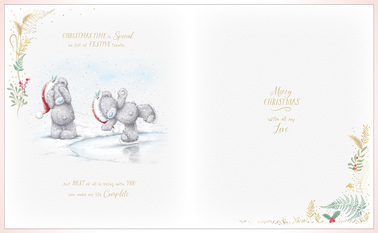 STUNNING CHRISTMAS CARD FOR YOUR WIFE - let her know just how much she means to you at this magical time of year with this luxury bespoke card from Me to You HANDMADE TOUCHES AND KEEPSAKE BOX - such a special card comes with die cut detail, gem attachments, gold foil finish and a beautiful keepsake box to be treasured forever ROMANTIC VERSE - the heartfelt verse inside the card reads 'Christmas is special so full of festive treats...but best of all is being with you, you make my life complete. Merry Christmas, with all my Love' PREMIUM BOXED CARD MEASURES 8x10ins - made from highest quality materials, with love and care, this gorgeous Christmas card is sure to be cherished by your wife