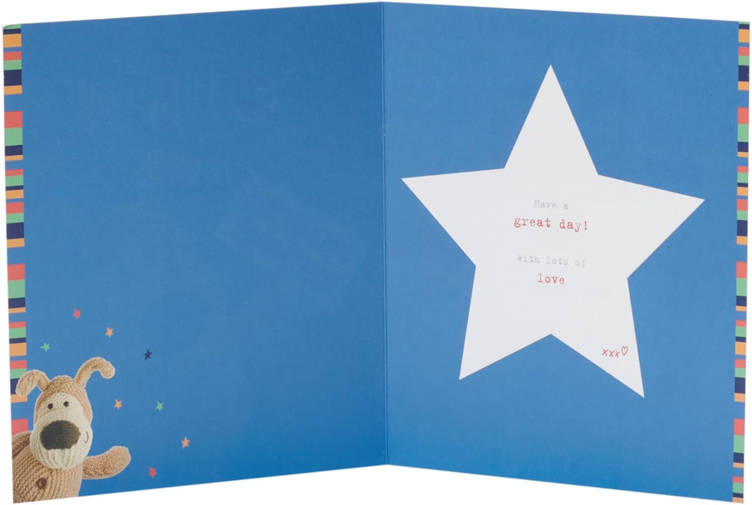 Wish your cousin a great birthday with this cute Boofle card, featuring colourful lettering and gold foil accents. Message Inside Reads: Have a great day! With lots of love. Card Size: 159mm x 184mm. Envelope Included.