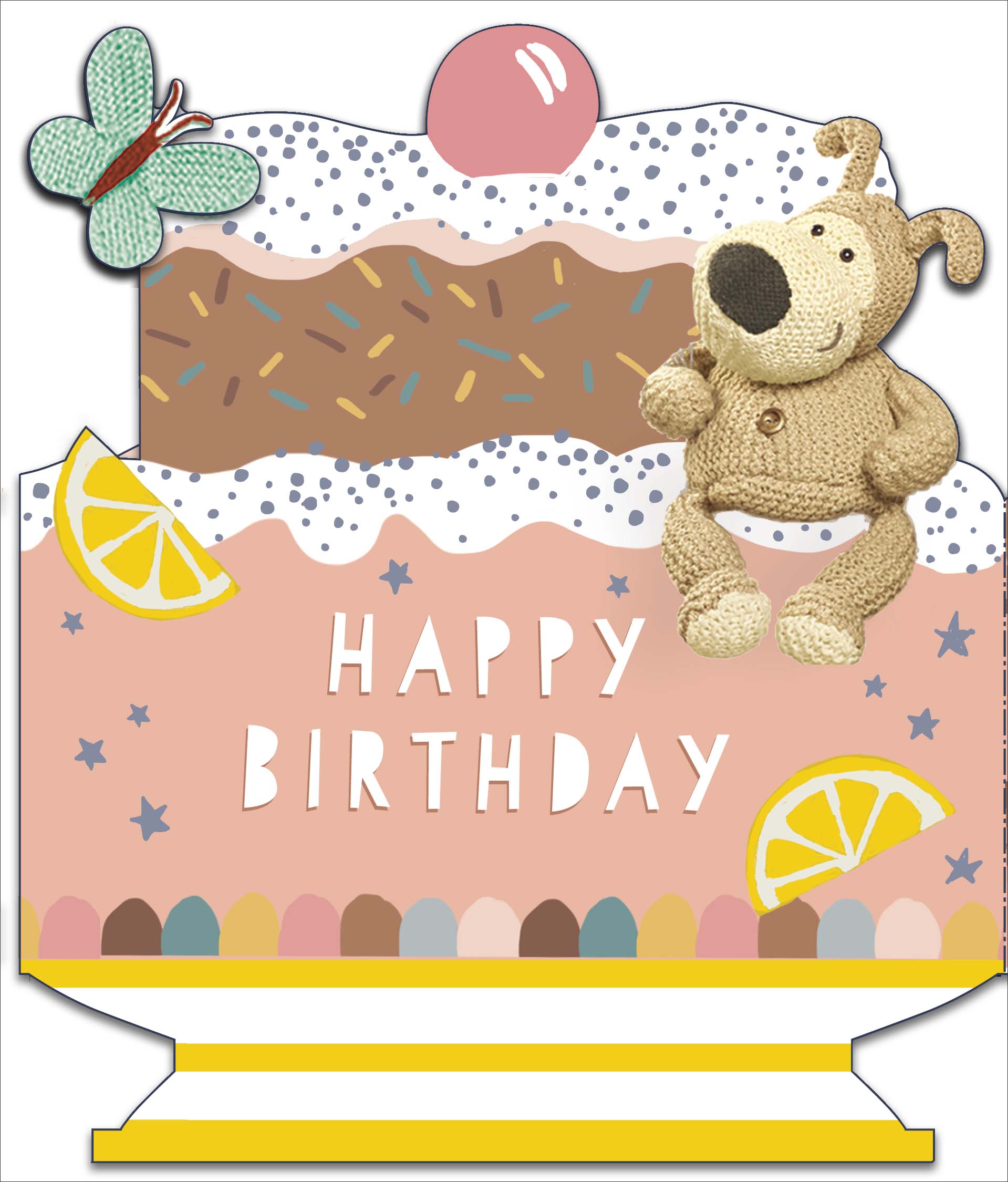 This cute Boofle card, printed on premium quality board and shaped like a cake, is perfect for sending birthday wishes! Inside Message Reads: ...to you! Card Size: 159mm x 184mm. Envelope Included.