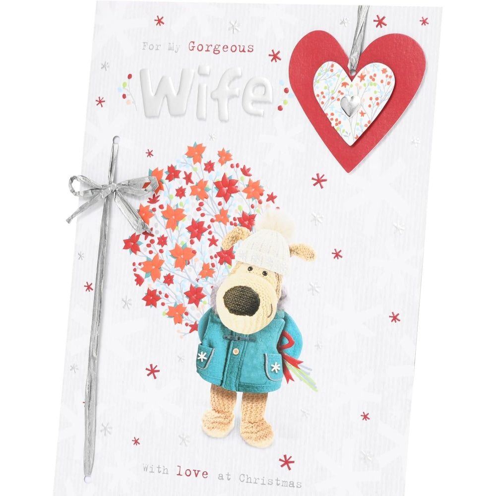 Christmas Card - Send Warm Wishes This Festive Season With A Christmas Card For Friends, Family, Or Colleagues. Whether Traditional Or Funny, A Heartfelt Message Will Make Their Holiday Even Brighter. Design - Wish A Gorgeous Wife A Merry Christmas With This Cute Boofle Card, Printed On Premium Quality Card With A Silver Raffia Bow And Foil Details. Gifts For Women - Make Her Smile With A Thoughtful Card. From Birthday Cards To Thank You Cards, Our Range Offers Something For Every Occasion, Showing Her How Much You Care With Just The Right Words. Verse: You'Re An Amazing Wife.. Size - This Card Measures 27.3 X 17.8 Cm, Ample Space For A Personal Message, And A Perfect Size For Displaying As A Keepsake In Your Home.