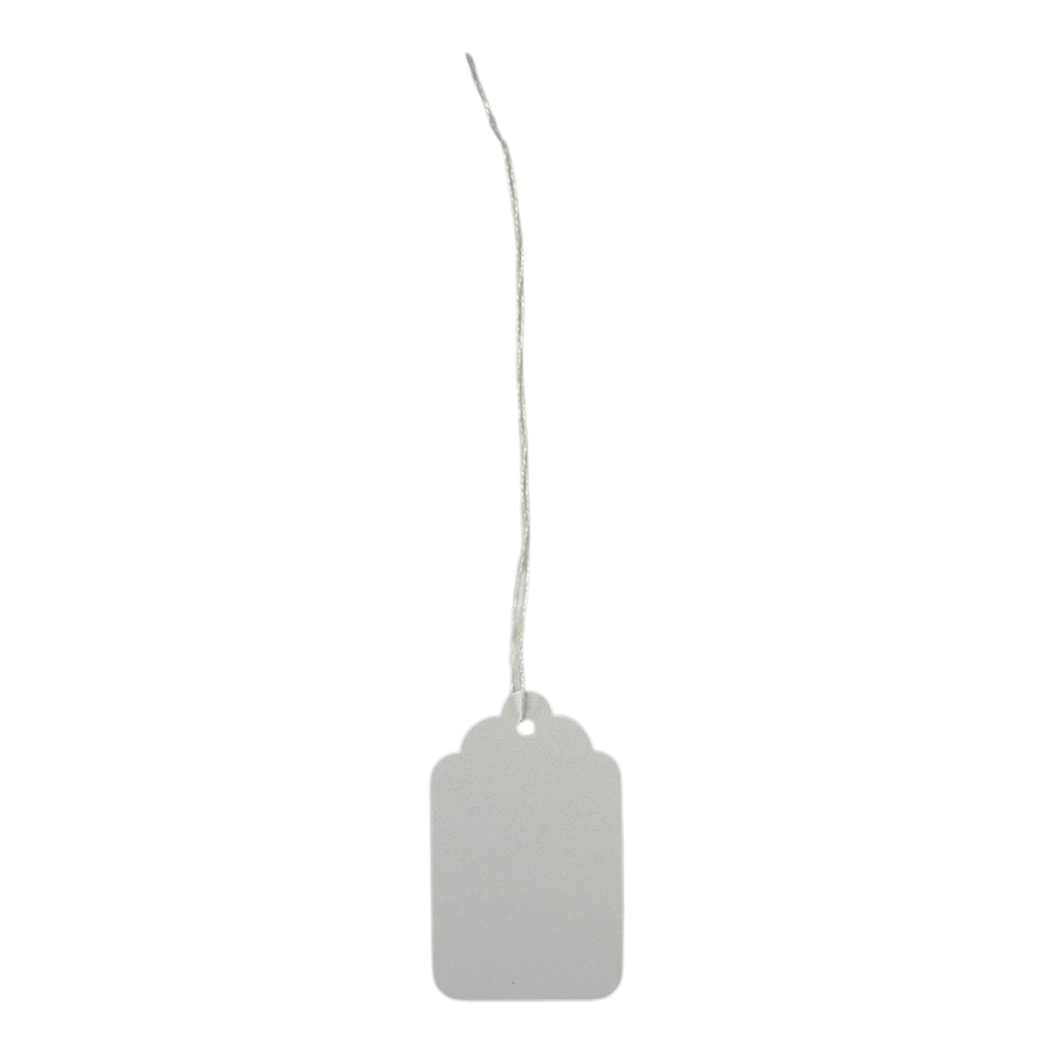Box of 1000 White Merchandise Tags 73mm x 44mm. White marking tags: the marking tags are made of white paper card and offer a smooth writing surface for quick and easy labelling and legible writing. Easy to use and remove: knotted string lets you add and remove the rectangular price tag easily without tying knots, durable and convenient. Space to write price, item number on these price labels to manage your stock. Good for for jewellery items, clothing display, warehouse items, gift tags etc. This bulk pack contains 1000 strung tags. Bundled in 10 x 100 for ease of storage.