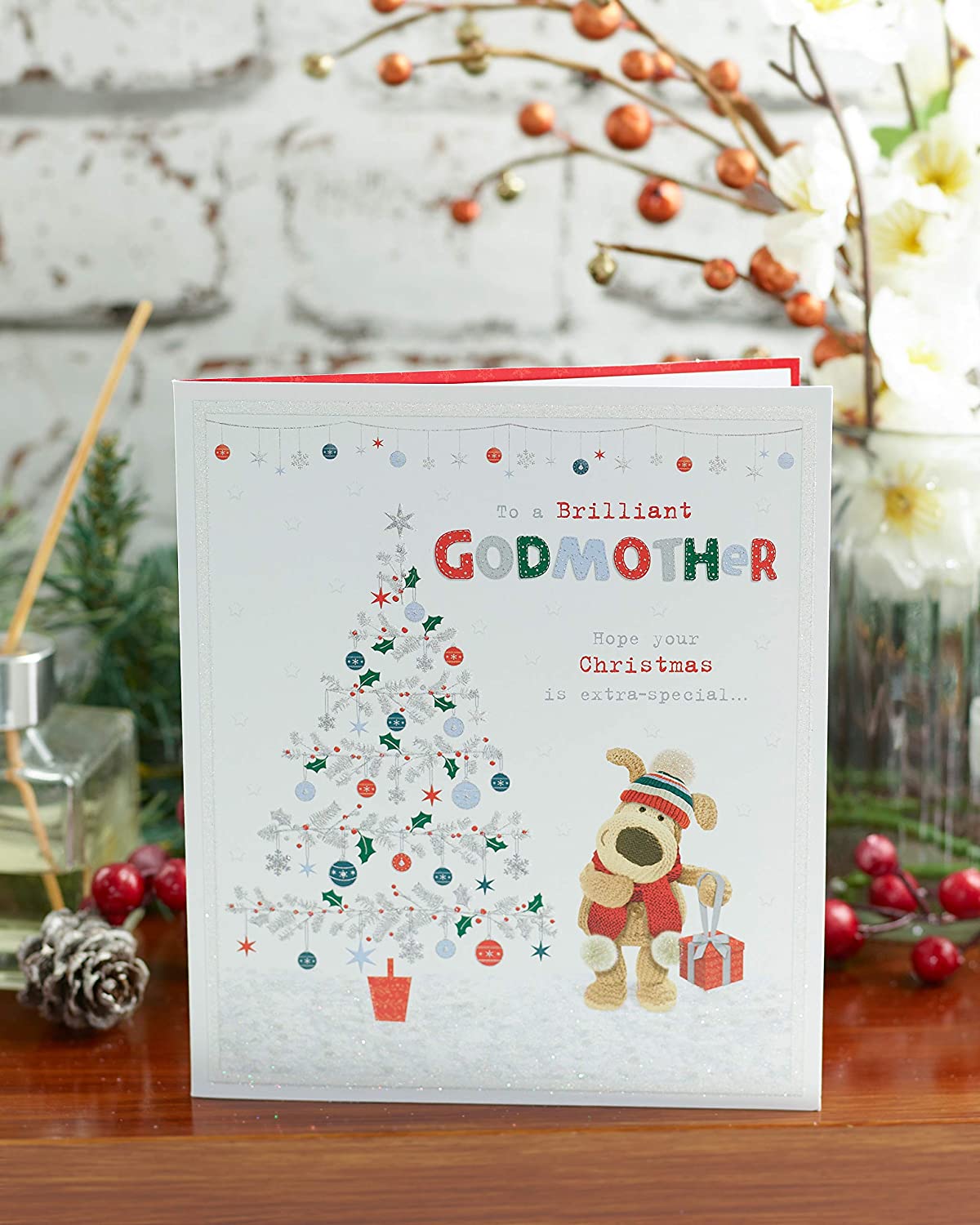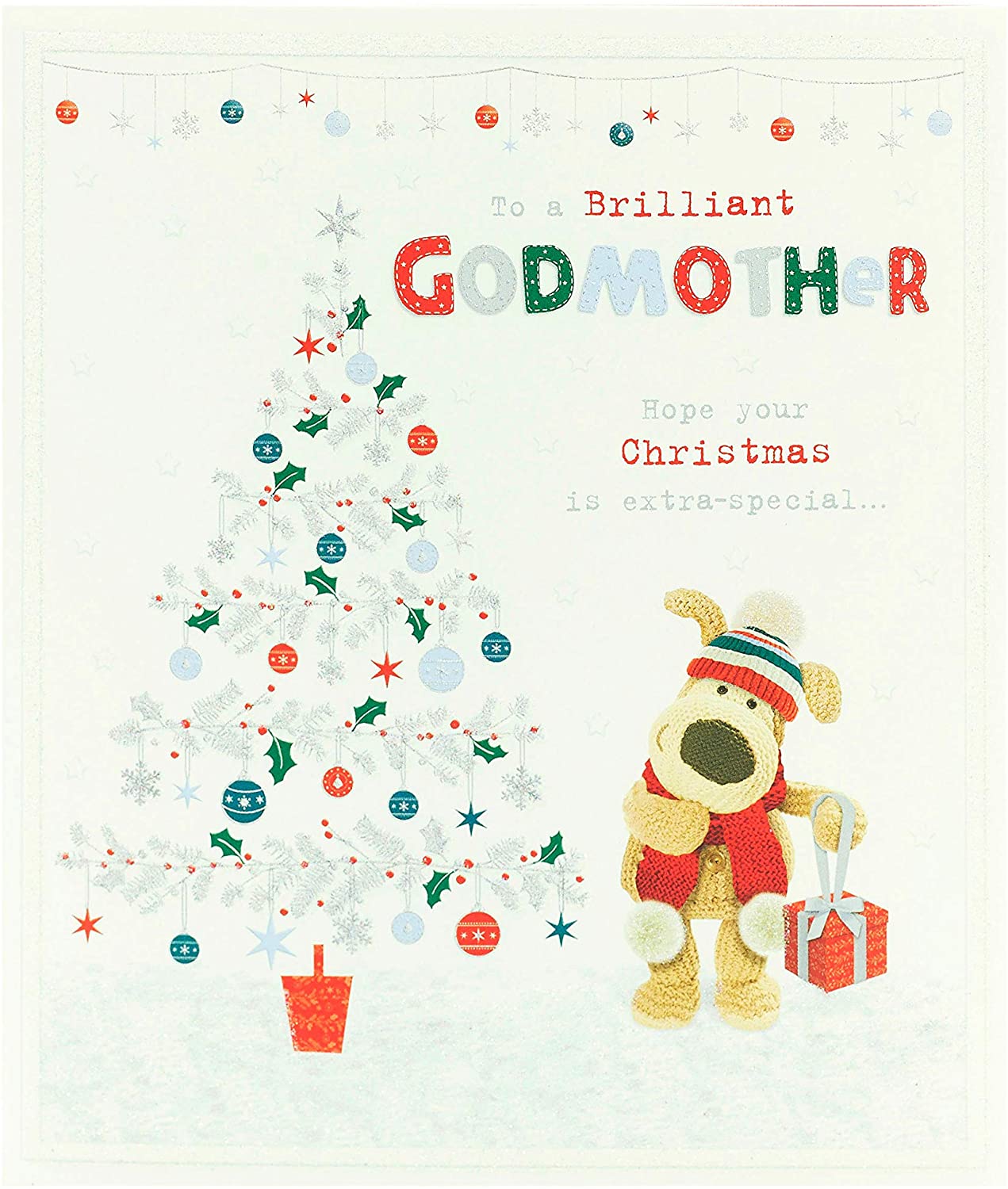 Brilliant Godmother Embossed Christmas Tree Design Boofle Christmas Card